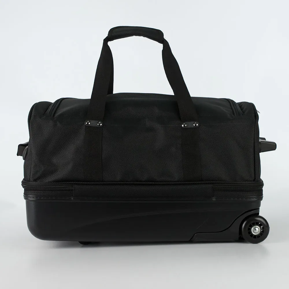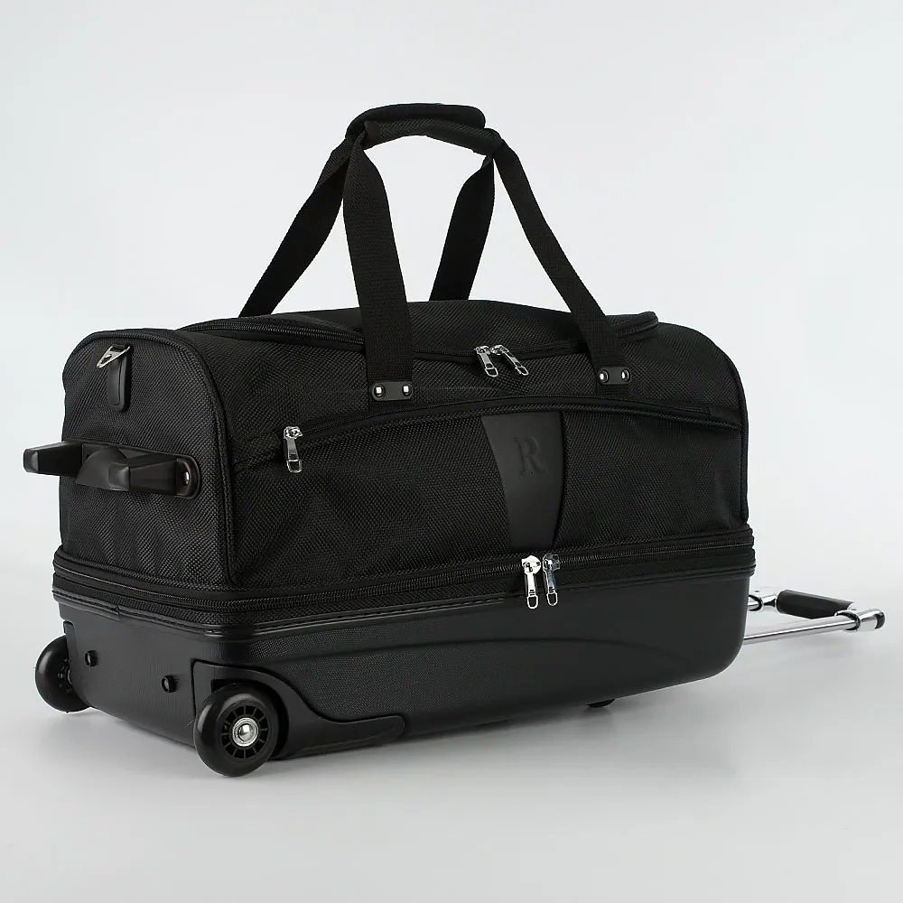 Функциональная дорожно-спортивная сумка на колесах от торговой марки Rion выполнена из прочного долговечного полиэстера коричневого цвета. Модель с глубоким пластиковым дном, с усиленным каркасом на двух колесах, для надежности, утопленных в корпус, с выдвижной телескопической ручкой, двумя удлиненными ручками с фиксатором на липучке, съемным плечевым ремнем с прорезиненным наплечником, пластиковыми ножками на дне и сбоку, боковым пластиковым держателем. Два отделения на молнии. Нижнее отделение широко раскрывается. Верхнее закрывается клапаном, внутри – карман на молнии. На лицевой стороне – карман на молнии. Сумка весом 3 кг рассчитана на объем 66 литров.