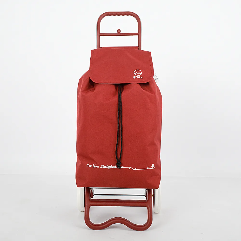Новая оригинальная модель, сочетающая в себе вместительность, практичность и стильный внешний вид - хозяйственная сумка от бренда Grott. Сумка выполнена из плотного текстильного материала бордового цвета. Основное отделение затягивается и запахивается клапаном, крепится к металлической конструкции на липучках. Снаружи два дополнительных кармана на молнии. Модель имеет эргономичную ручку для перевозки и два больших колеса. Дно модели оснащено надёжной «ножкой» для стоянки.
