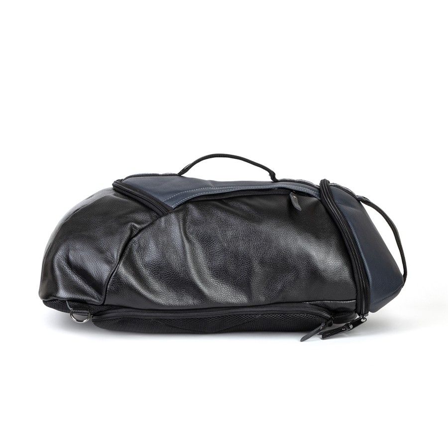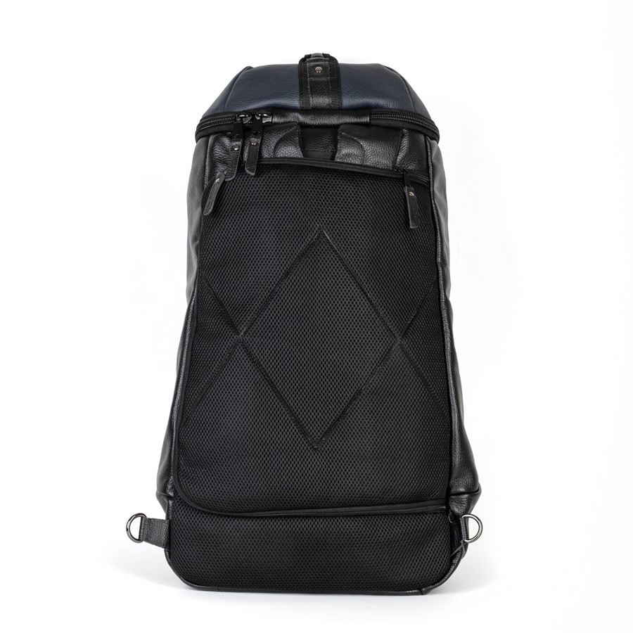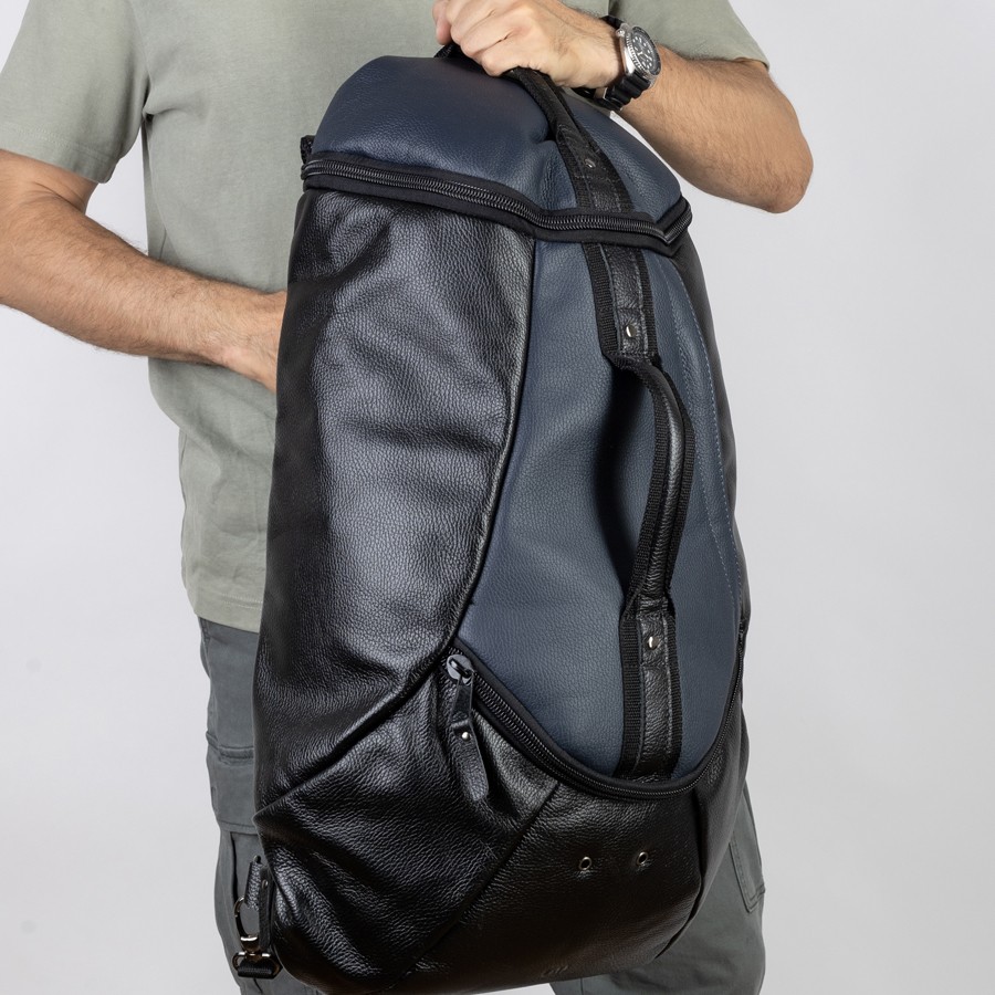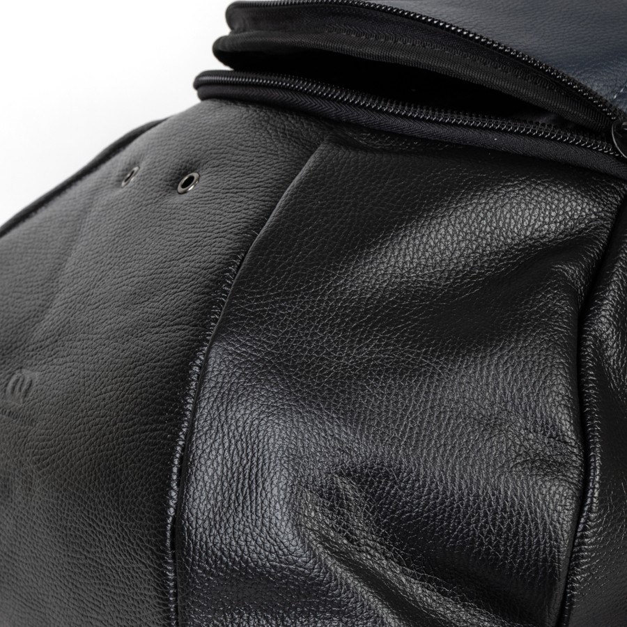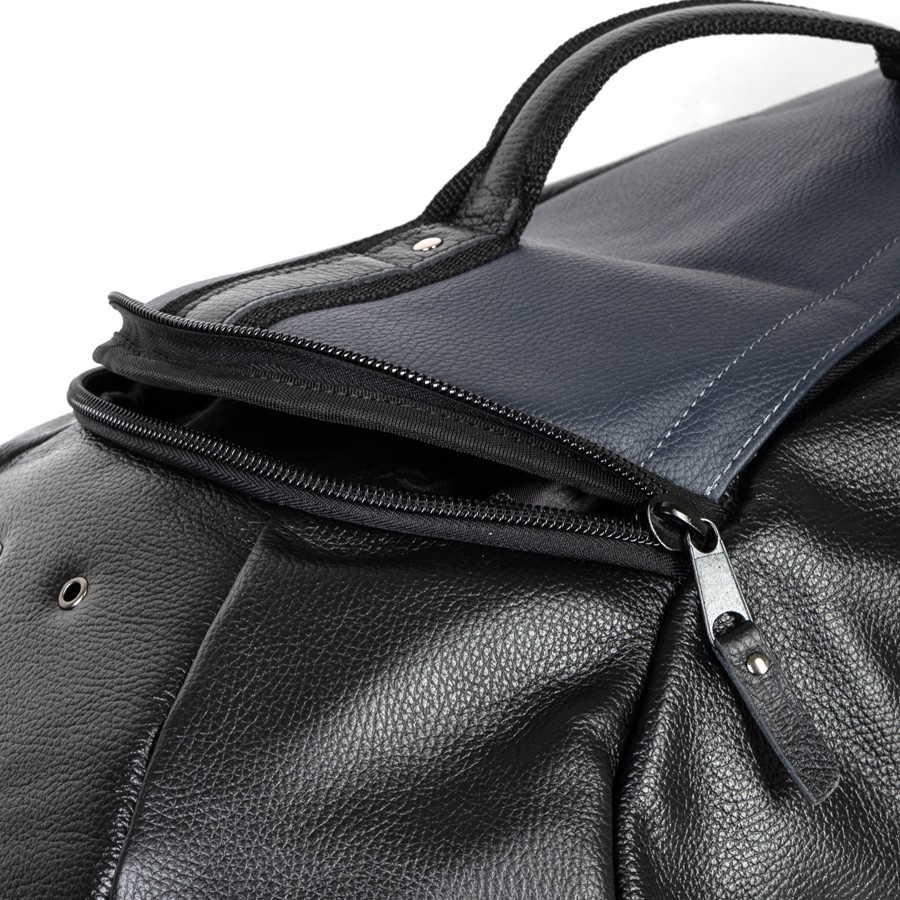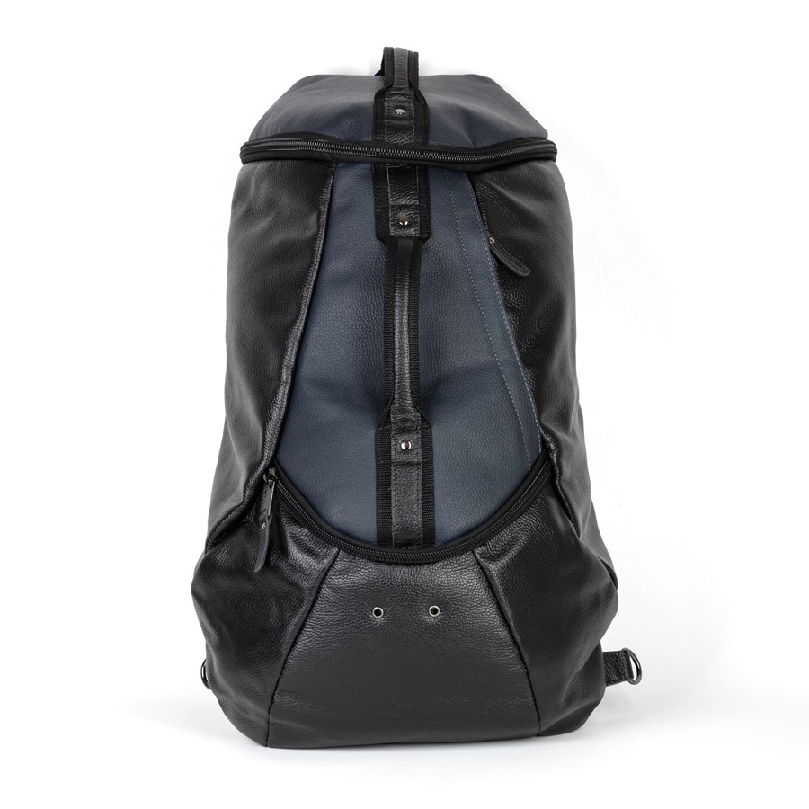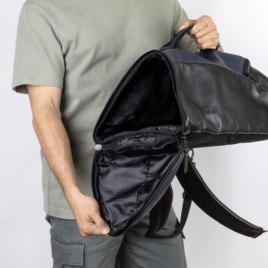 Сумка-рюкзак от Francesco Molinary, выполненная из кожи черного цвета, предлагает универсальное решение для вертикальной и горизонтальной переноски.