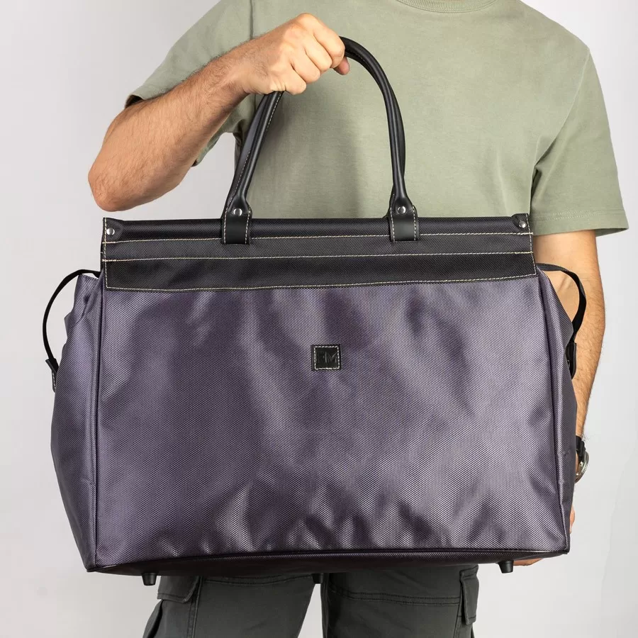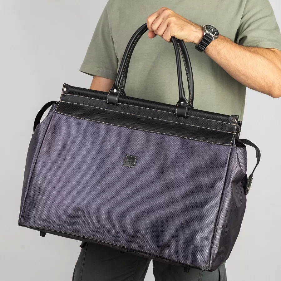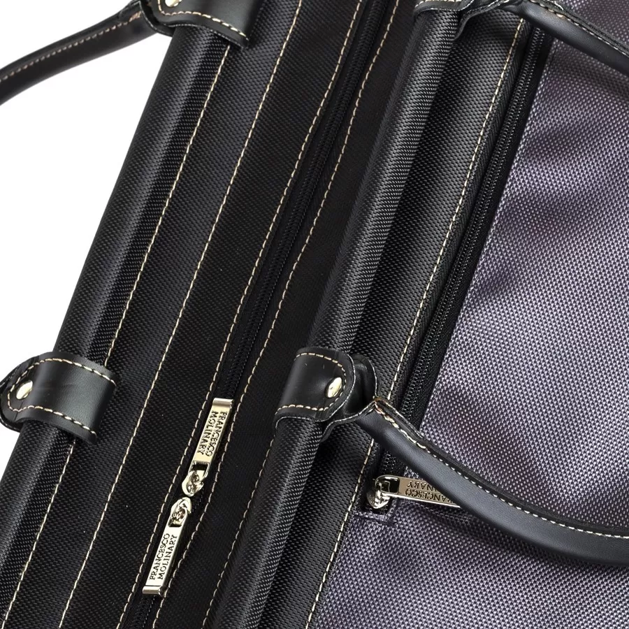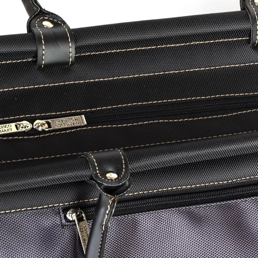 Дорожно-спортивная сумка от торговой марки Francesco Molinary выполнена из текстильного материала серого цвета и вставками из искусственной кожи. Модель с двумя плотными ручками. Рамочная конструкция замка обеспечивает комфортный доступ внутрь. Отделение на молнии; молния по бокам фиксируется магнитной кнопкой. Внутри: отделение дополнительно фиксируется ремешками-стяжками с застежкой фастекс; текстильная подкладка, навесной карман. На задней стороне – карман на молнии. Дно оснащено пластиковыми ножками для защиты от износа.