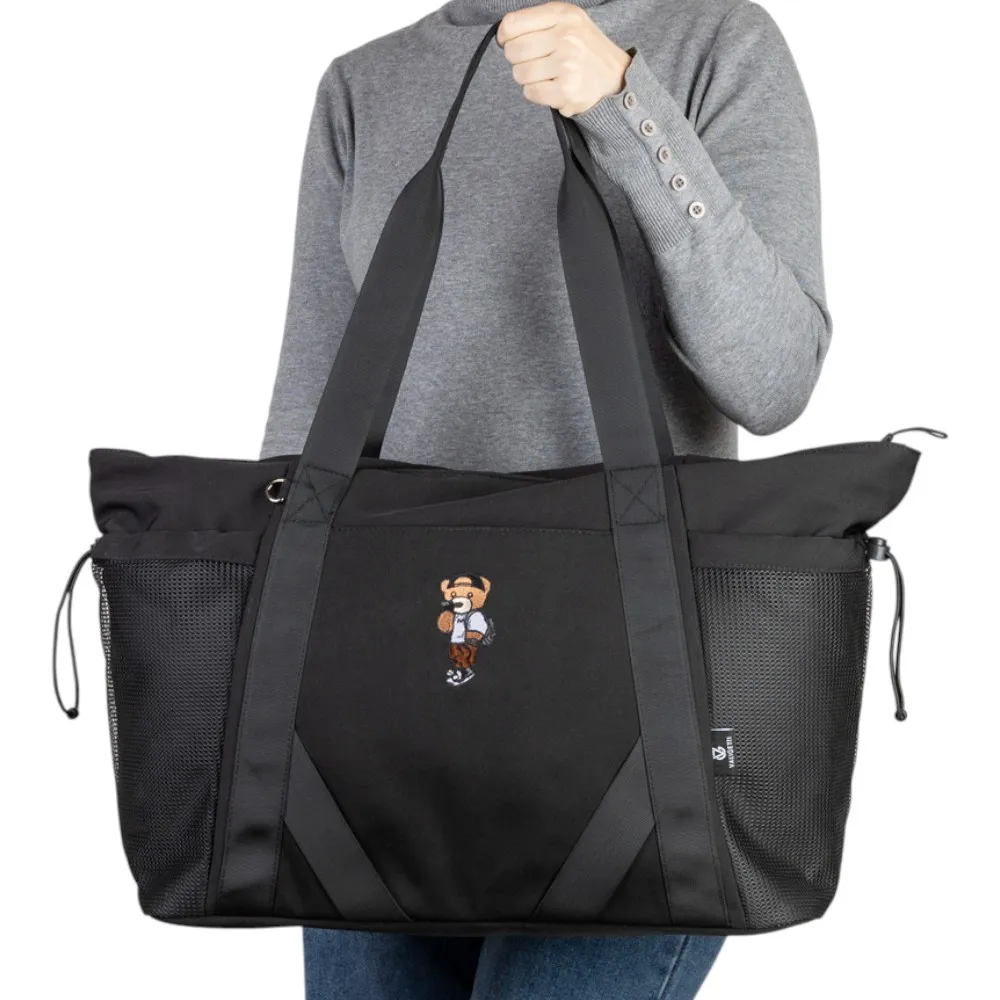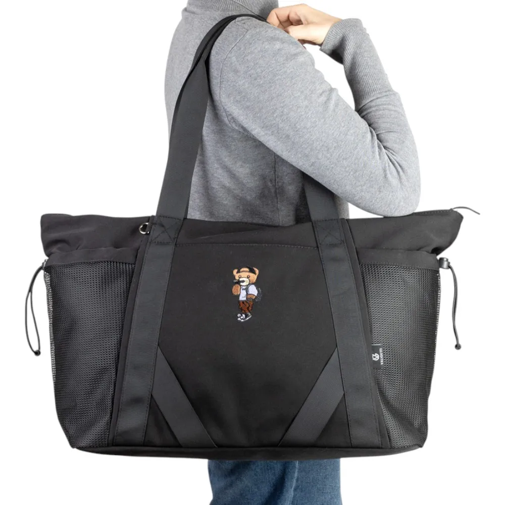 Сумка дорожно-спортивная от бренда Valigetti с красивым рисунком спереди. По бокам есть карманы с сеточкой с регулируемыми стяжками. Модель закрывается на молнию и имеет одно большое отделение. Внутри есть 2 открытых кармана, куда поместится телефон или ключи, а так же дополнительный внутренний карман на молнии.