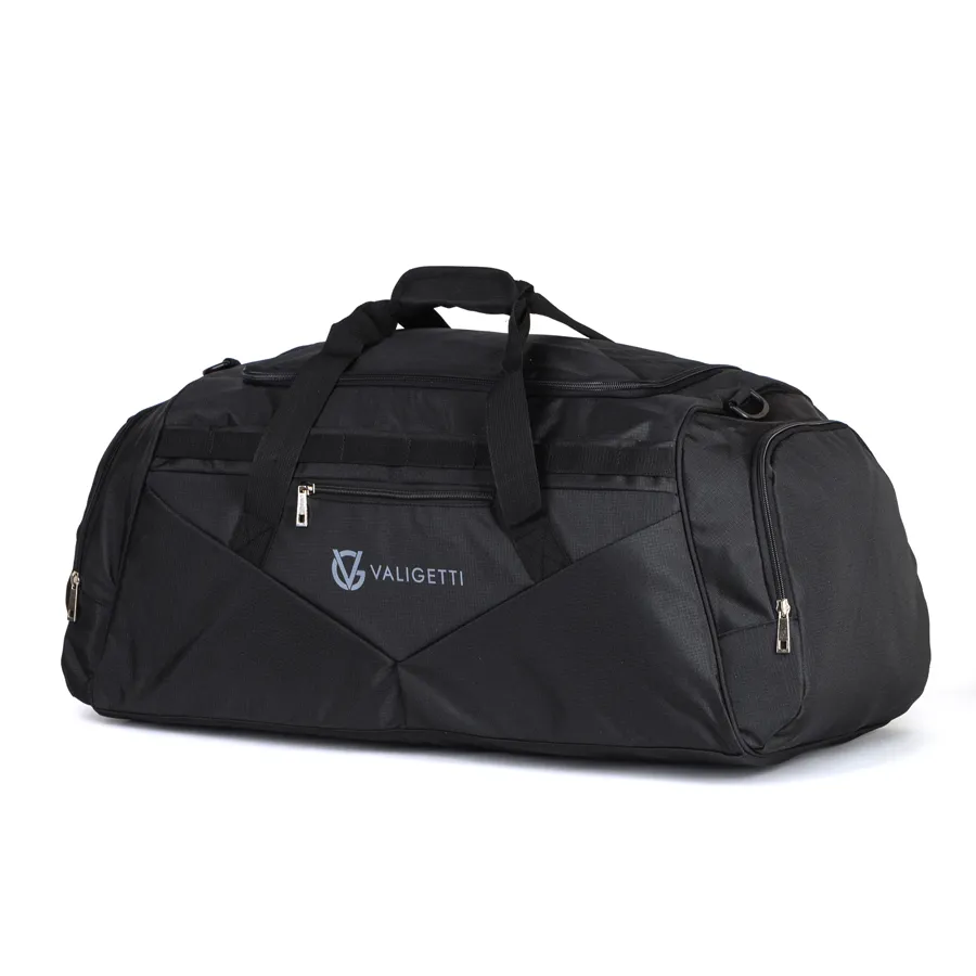 Сумка от торговой марки Valigetti выполнена из практичного текстильного материала черного цвета. Модель с двумя ручками и длинным регулируемым плечевым ремнем. Закрывается клапаном на молнии. По бокам - карманы на молнии. Спереди - карман на молнии.