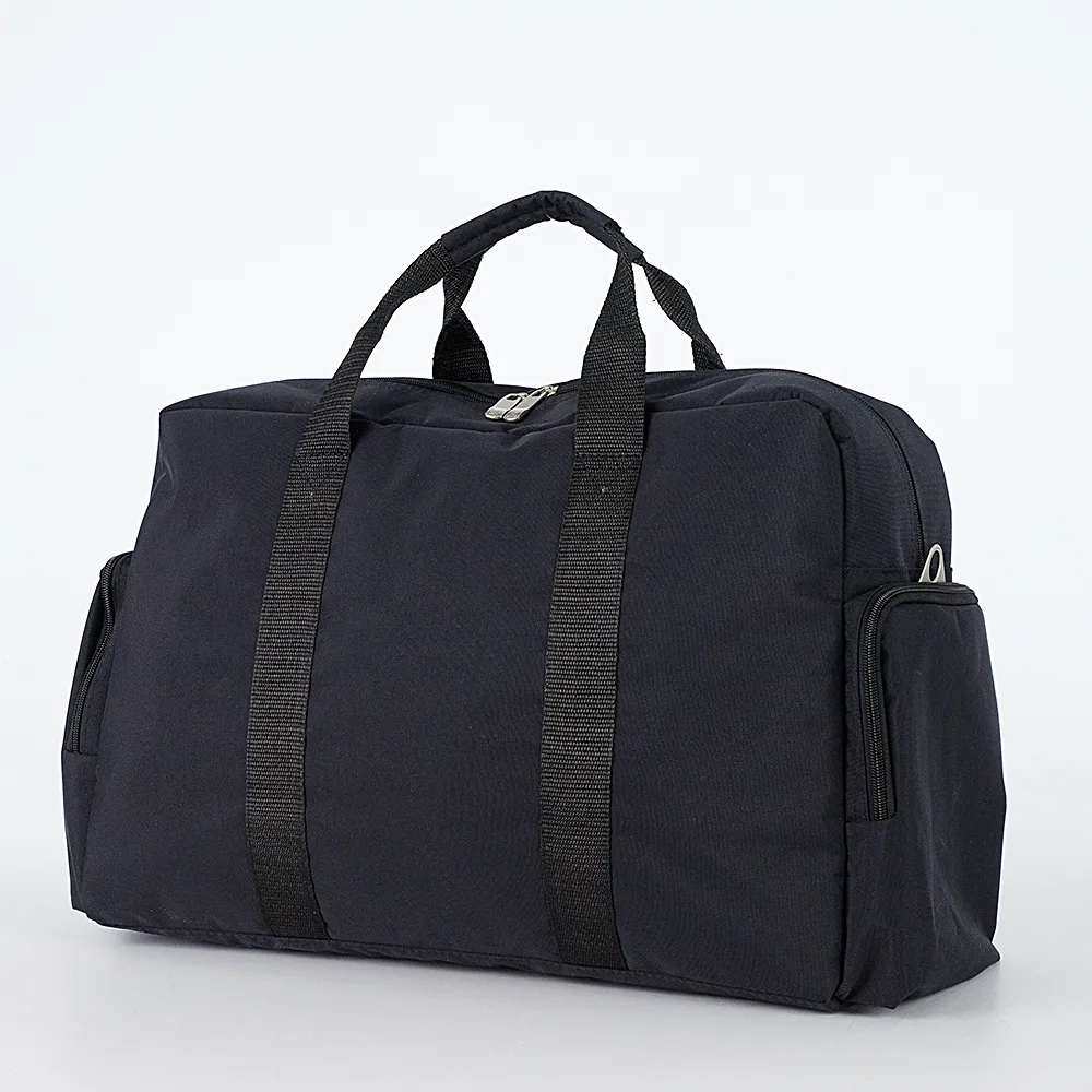 Дорожно-спортивная сумка от торговой марки Mr.Bag из плотного текстильного материала черного цвета. Вместительная модель с двумя ручками и съемным регулируемым плечевым ремнем. Отделение на молнии. Внутри: большой накладной карман, фиксирующийся ремешком на липучке, карман на молнии. На лицевой стороне – накладной карман на магнитной кнопке. По бокам – накладной карман на молнии.