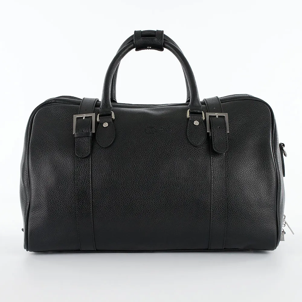Дорожно-спортивная сумка от торговой марки Francesco Molinary из натуральной кожи коричневого цвета. Вместительная модель с двумя ручками с фиксатором на кнопке, съемным регулируемым плечевым ремнем. Закрывается двумя ремешками с пряжками. Отделение на молнии. Внутри: фирменная подкладка, карман на молнии. На задней стороне – карман на молнии. Дно оснащено металлическими ножками для защиты от износа.