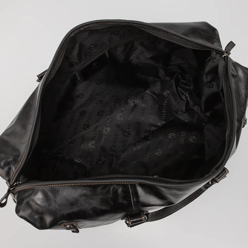 Дорожно-спортивная сумка от торговой марки Francesco Molinary из натуральной кожи черного цвета. Вместительная модель с двумя ручками, съемным регулируемым текстильным плечевым ремнем с кожаным наплечником. Отделение на молнии. Внутри: фирменная подкладка, карман на молнии. С лицевой стороны два кармана на молнии. На задней стороне - карман на молнии. Дно оснащено металлическими ножками для защиты от износа.
