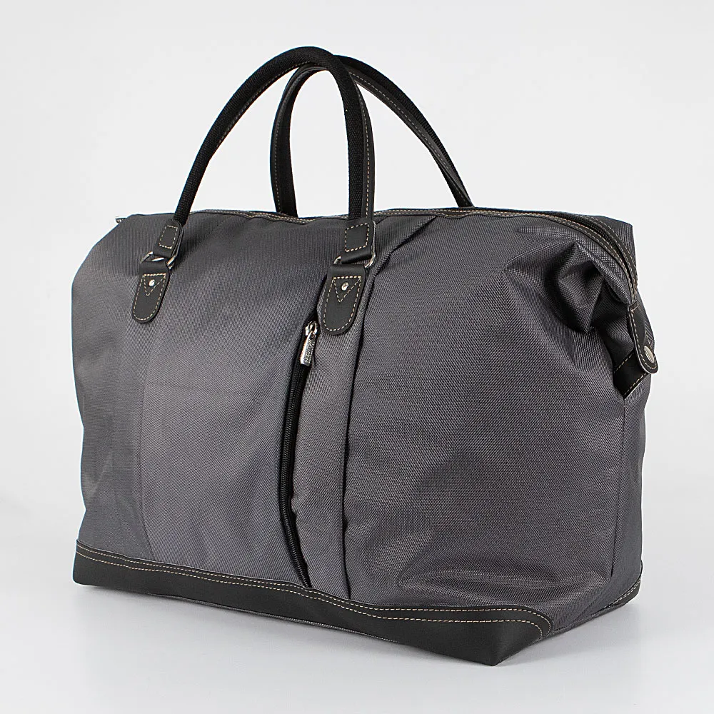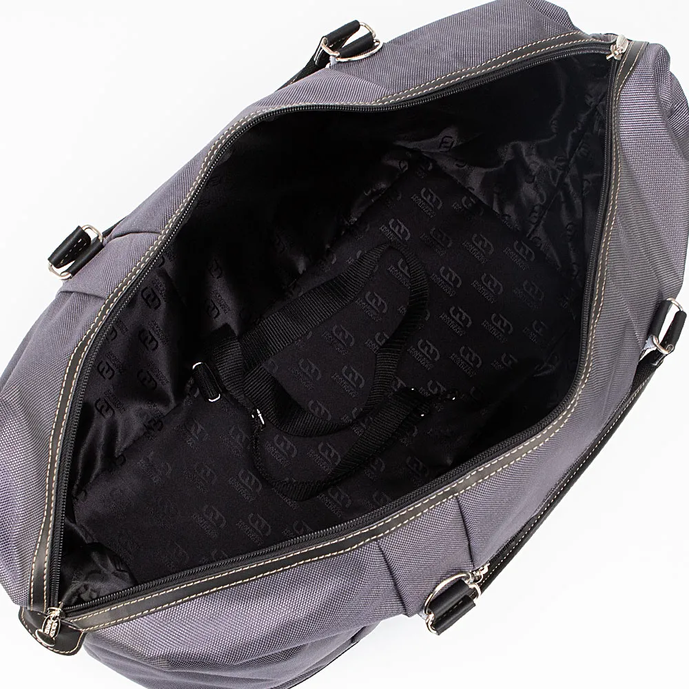 Дорожная сумка от торговой марки Francesco Molinary из практичного плотного текстильного материала серого цвета и искусственной кожи с контрастной отстрочкой. Вместительная модель с двумя плотными ручками и съемным регулируемым плечевым ремнем. Отделение на молнии, которая фиксируется по бокам кнопками, что позволяет менять объем и форму сумки. Внутри: фирменная подкладка. На лицевой стороне – карман на молнии, на задней – вертикальный карман на молнии. Дно оснащено прорезиненными накладками для защиты от износа.