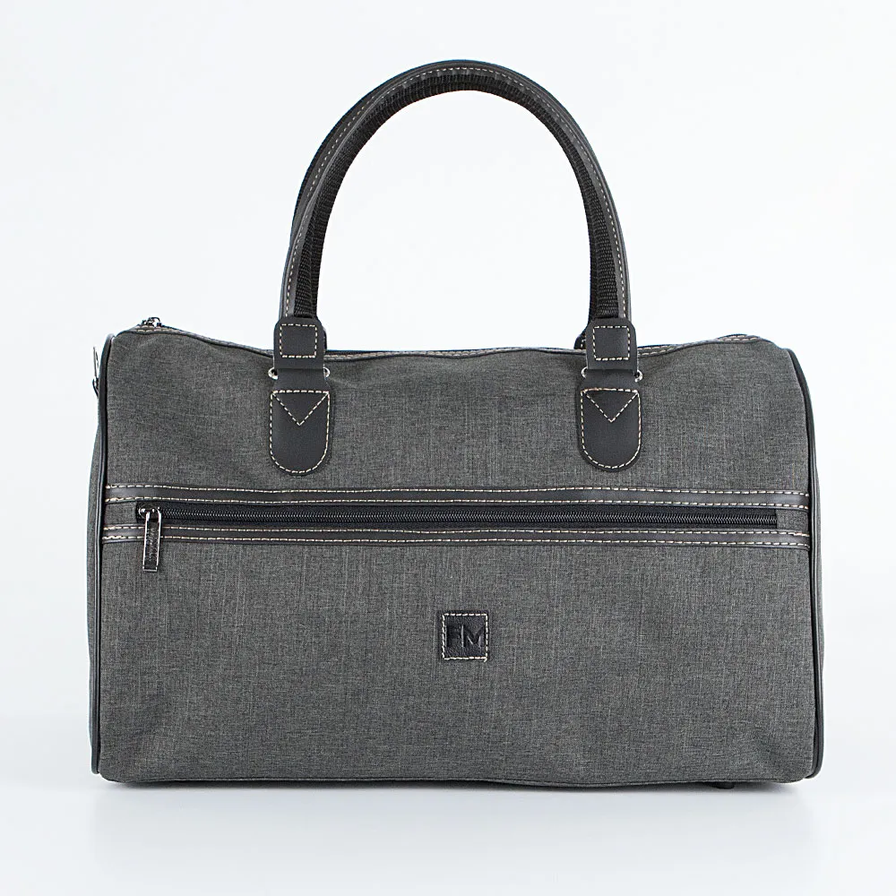Дорожная сумка от торговой марки Francesco Molinary выполнена из плотной текстильной ткани с вставками из искусственной кожи в черном цвете с контрастной отстрочкой. Модель с двумя плотными ручками и съемным плечевым ремнем. Вместительное отделение на молнии. Внутри: фирменная подкладка. На лицевой стороне – карман на молнии. Дно сумки оснащено пластиковыми ножками для защиты от износа.