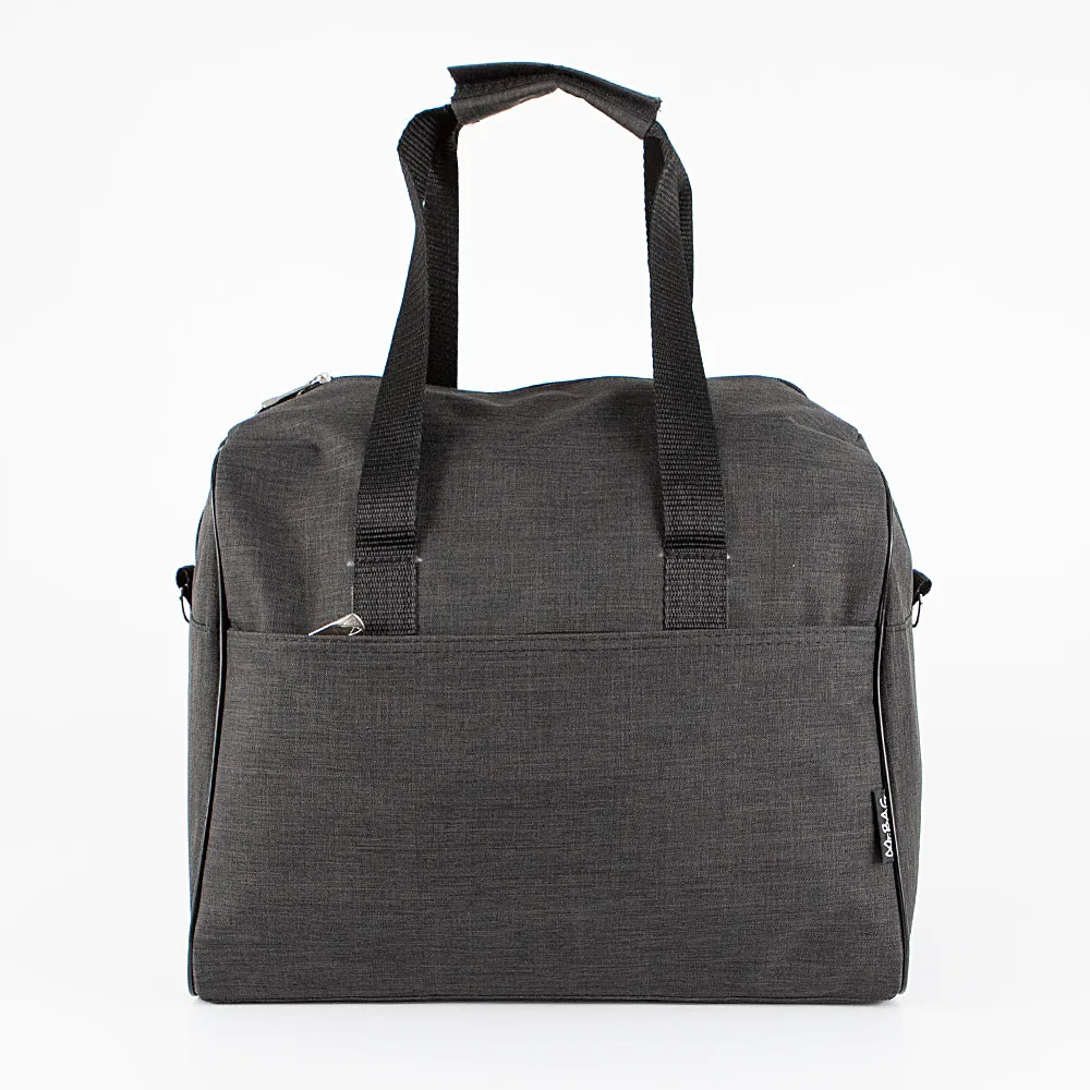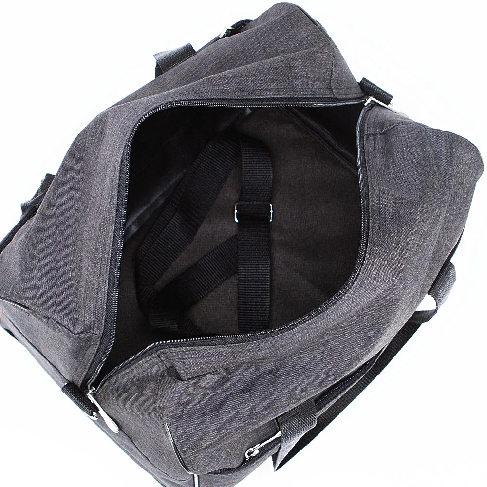 Дорожно-спортивная сумка серии «авиа» от торговой марки Mr.Bag выполнена из плотного и практичного текстильного материала синего цвета. Сумка прямоугольной формы с широким дном, что делает её вместительной. Модель с двумя ручками для переноски с фиксатором на липучке и съемным плечевым ремнем. Отделение на молнии, без подкладки. На передней стороне – карман на молнии, на задней стороне – карман на молнии снизу и сверху. При открытой молнии карман превращается в багажную лямку для крепления сумки на ручку чемодана. Размеры сумки подходят под калибратор для ручной клади авиакомпании «Победа».