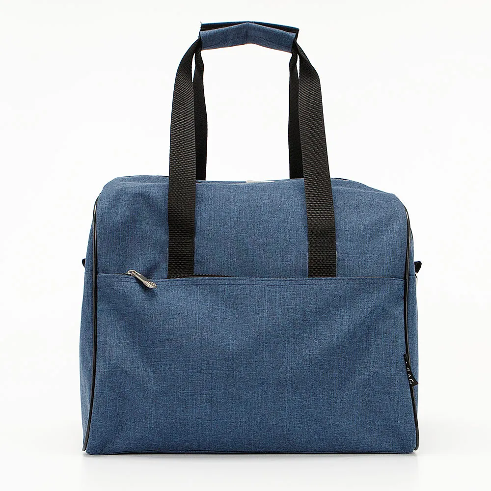 Дорожно-спортивная сумка серии «авиа» от торговой марки Mr.Bag выполнена из плотного и практичного текстильного материала синего цвета. Сумка прямоугольной формы с широким дном, что делает её вместительной. Модель с двумя ручками для переноски с фиксатором на липучке и съемным плечевым ремнем. Отделение на молнии, без подкладки. На передней стороне – карман на молнии, на задней стороне – карман на молнии снизу и сверху. При открытой молнии карман превращается в багажную лямку для крепления сумки на ручку чемодана. Размеры сумки подходят под калибратор для ручной клади авиакомпании «Победа».