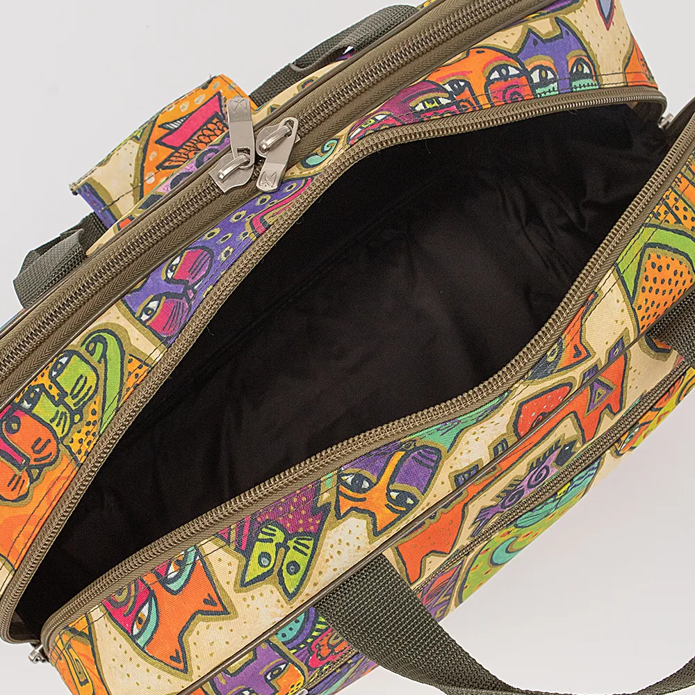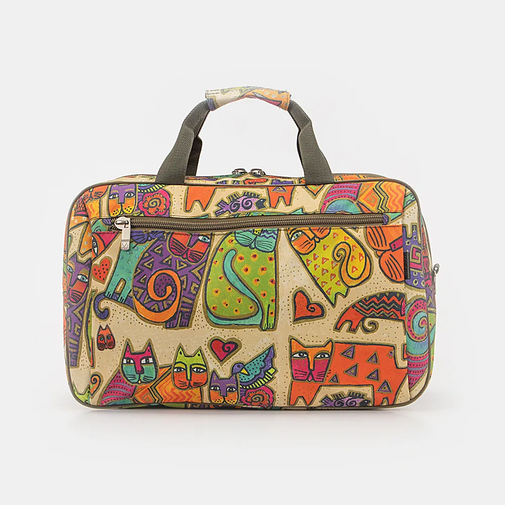 Дорожно-спортивная сумка от торговой марки Mr.Bag выполнена из плотного текстильного материала яркой расцветки с оригинальным изображением кошек. Модель с двумя плотными ручками, съемным регулируемым плечевым ремнем с мягким наплечником. Два отделения на молнии. Основное отделение с текстильной подкладкой, с карманом на молнии; также имеется отделение без подкладки. Спереди – карман на молнии, на задней стороне – лямка для крепления сумки на выдвижную ручку чемодана. Дно сумки оснащено пластиковыми ножками для защиты от износа.