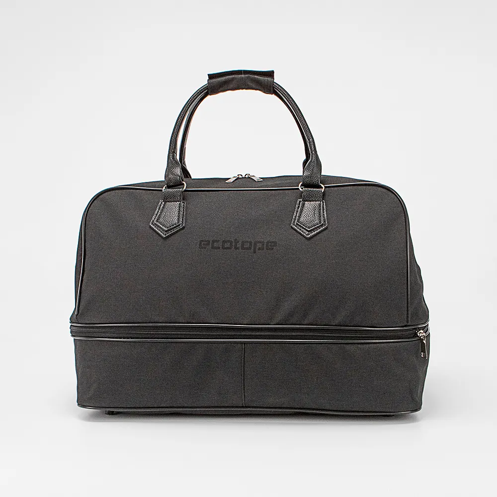 Дорожно-спортивная сумка от торговой марки Ecotope из практичного текстильного материала черного цвета. Модель с двумя плотными ручками из искусственной кожи с фиксатором на липучке, съемным регулируемым плечевым ремнем. Отделение на молнии с двумя встречными бегунками. Внутри: карман на молнии. На задней стороне – карман на молнии. Дно оснащено пластиковыми ножками для защиты от износа. Имеется раздвижка для увеличения объема.