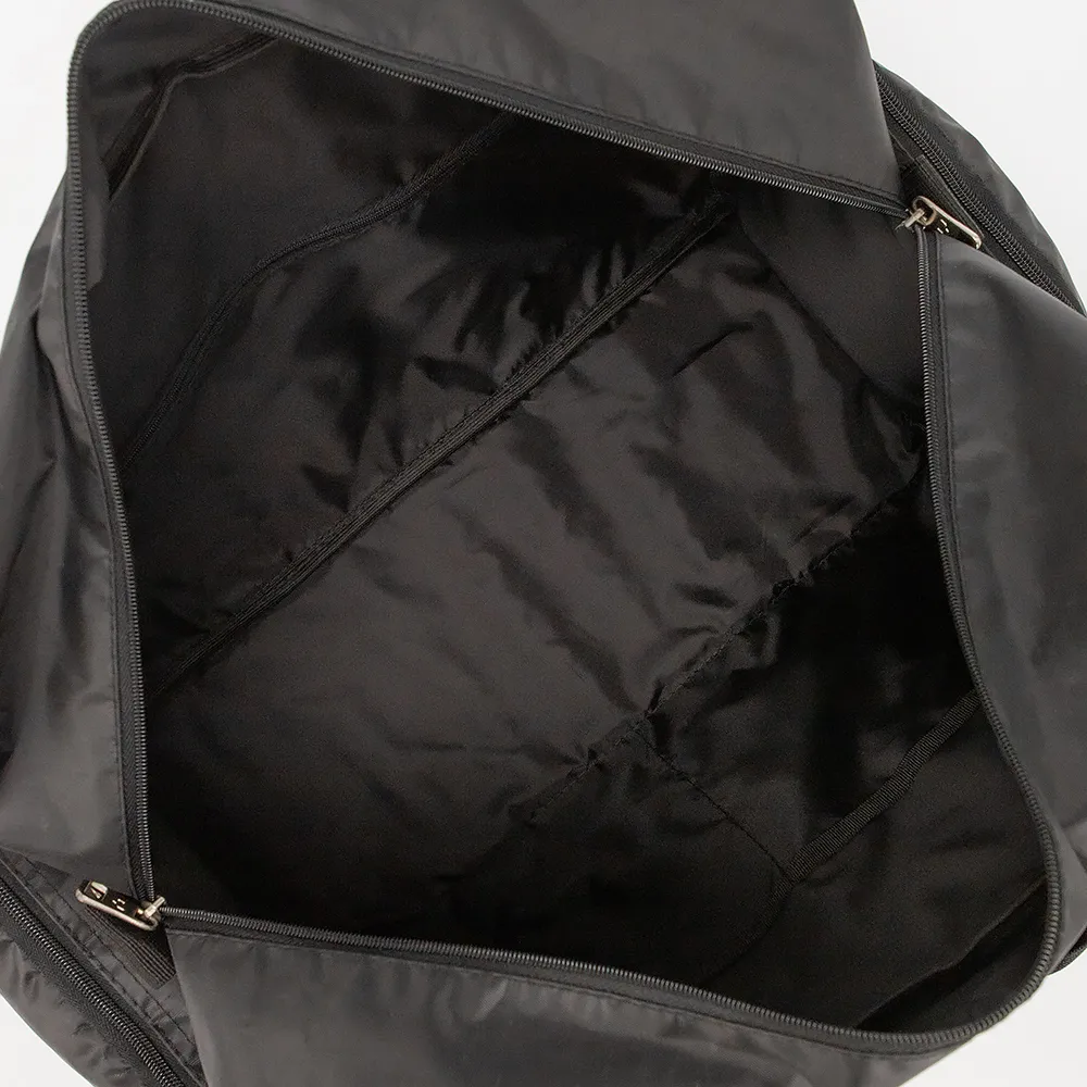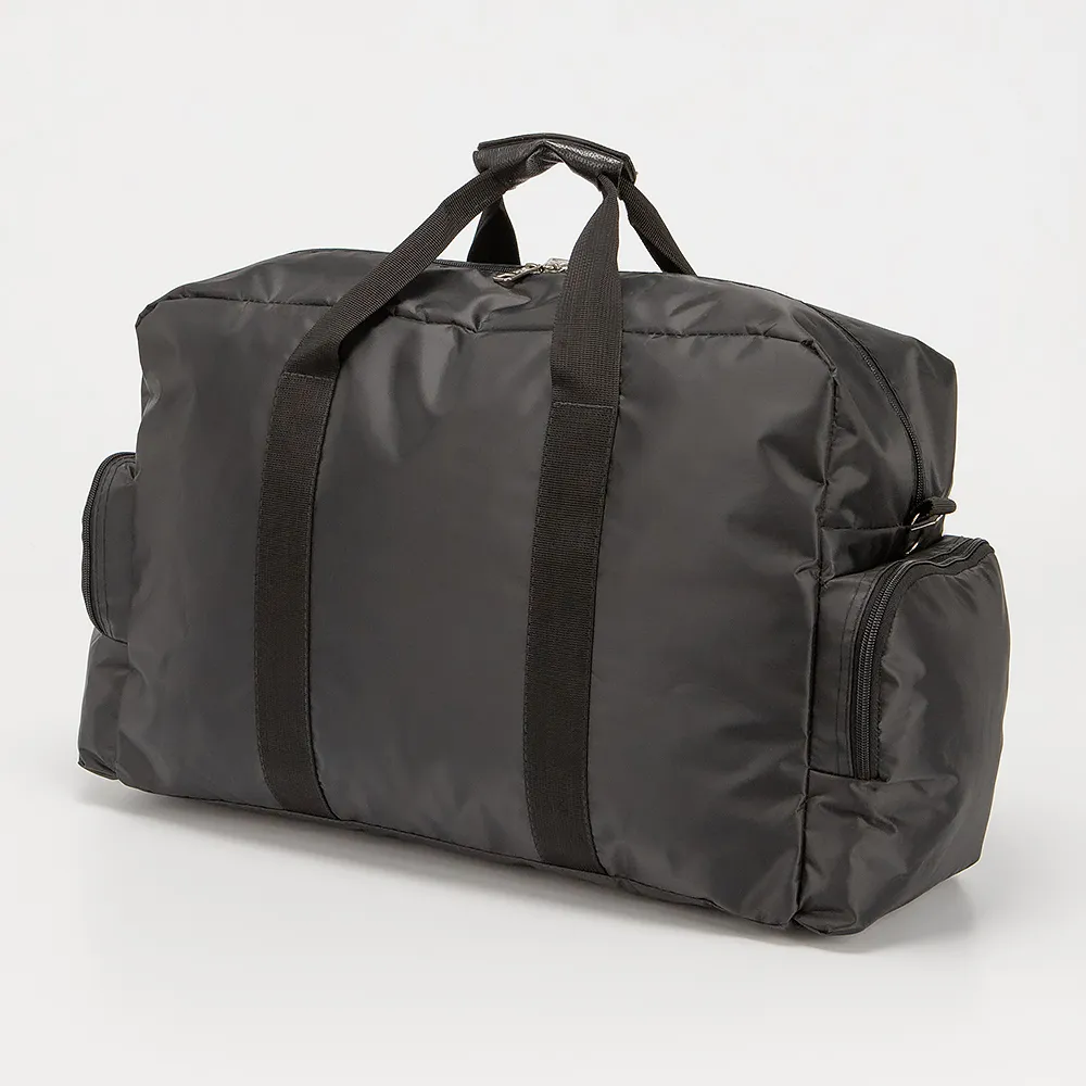 Дорожно-спортивная сумка от торговой марки Ecotope из плотного текстильного материала черного цвета. Вместительная модель с двумя ручками с фиксатором на липучке и съемным плечевым ремнем с наплечником. Отделение на молнии с двумя встречными бегунками. Внутри: текстильная подкладка, карман на молнии, накладной карман. На лицевой стороне - карман со скрытой молнией. По бокам - накладные карманы на молнии.