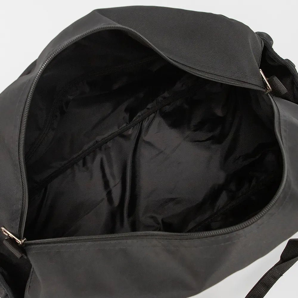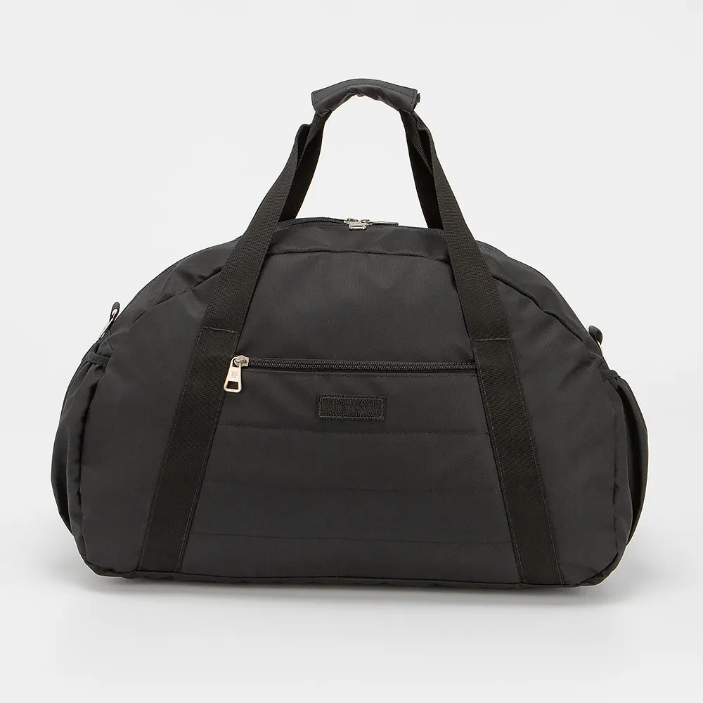 Дорожно-спортивная сумка от торговой марки Ecotope из плотного текстильного материала черного цвета. Вместительная модель с двумя ручками с фиксатором на липучке и съемным плечевым ремнем с наплечником. Отделение на молнии с двумя встречными бегунками. Внутри: текстильная подкладка, карман на молнии, накладной карман. На лицевой стороне - карман на молнии. По бокам - накладные карманы на резинке.