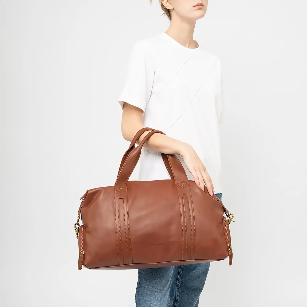 Дорожно-спортивная сумка от торговой марки Francesco Molinary из натуральной кожи коричневого цвета. Модель с двумя удлиненными ручками и съемным регулируемым плечевым ремнем. Отделение на молнии с встречными бегунками. Внутри: текстильная подкладка, карман на молнии, накладной карман. По бокам - накладные карманы на молнии. Сзади - карман на молнии.