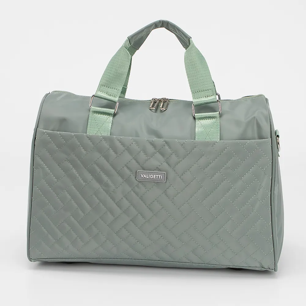 Дорожно-спортивная сумка от торговой марки Valigetti из текстильного материала сиреневого цвета. Модель с двумя ручками и съемным регулируемым плечевым ремнем, декорирована стежкой. Отделение на молнии. Внутри: текстильная подкладка, карман на молнии, накладной карман. С лицевой стороны - карман на молнии. Сзади - петля для крепления на ручку чемодана. Дно оснащено ножками для защиты от износа.