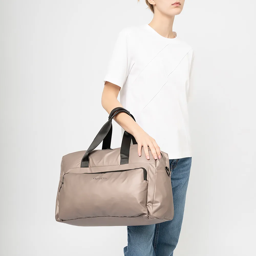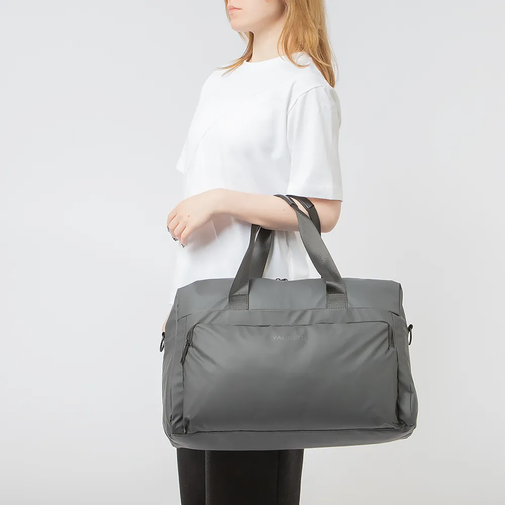 Дорожно-спортивная сумка от торговой марки Valigetti из текстильного материала серого цвета. Модель с двумя ручками и съемным регулируемым плечевым ремнем. Отделение на молнии. Внутри: текстильная подкладка, карман на молнии. С лицевой стороны - карман на молнии. Сзади - петля для крепления на ручку чемодана и карман на молнии.