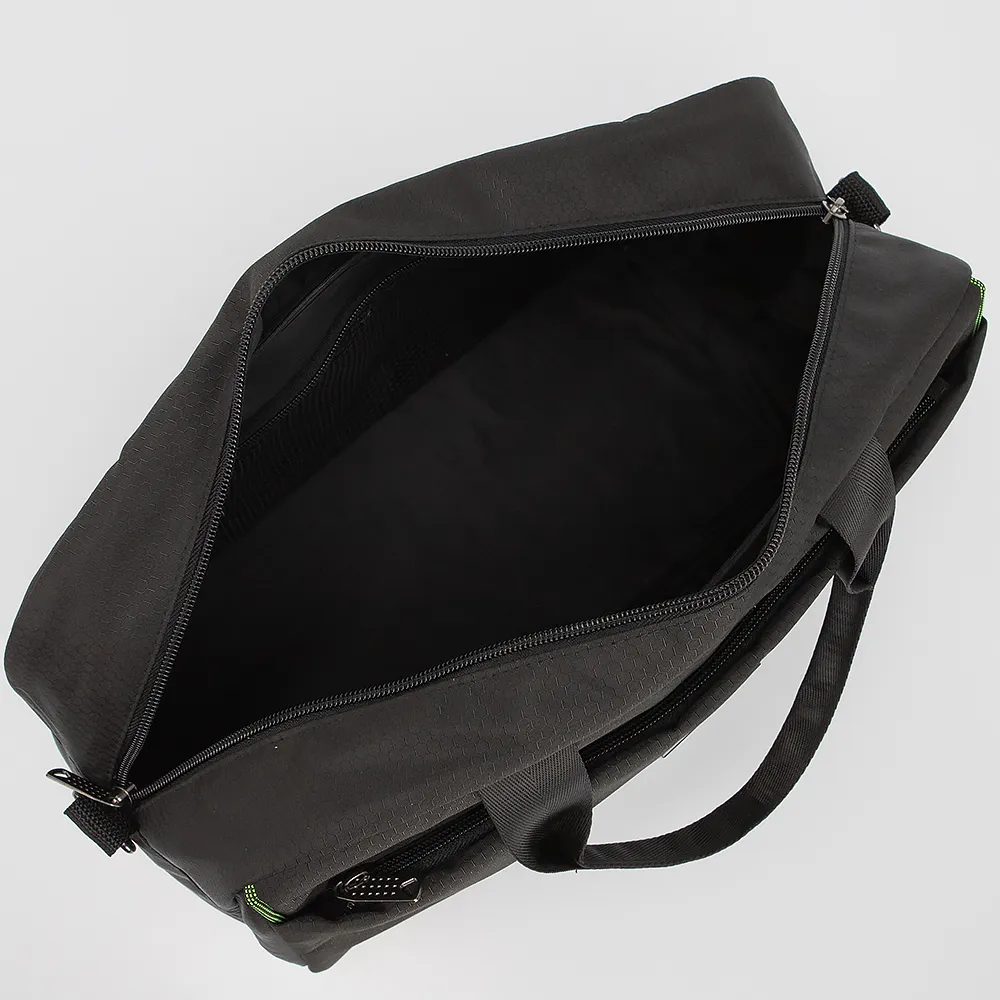 Дорожно-спортивная сумка от торговой марки Mr.Bag выполнена из текстильного материала черного цвета. Модель с двумя ручками и съемным регулируемым плечевым ремнем. Отделение на молнии с двумя встречными бегунками. Внутри - карман на молнии. На лицевой стороне - карман на молнии.