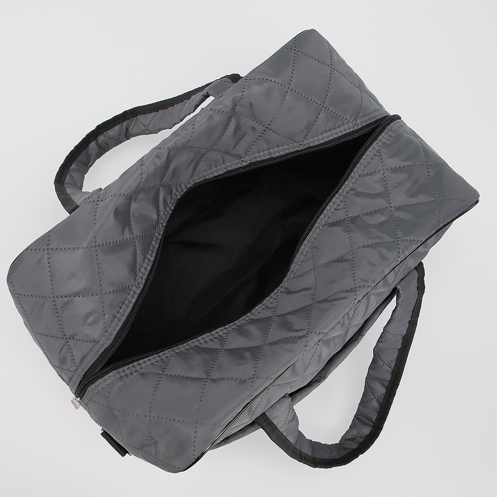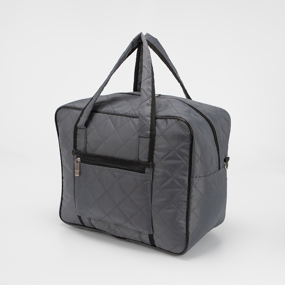 Дорожно-спортивная сумка от торговой марки Mr.Bag выполнена из текстильного материала серого цвета. Модель с двумя ручками и съемным регулируемым плечевым ремнем. Декорирована ромбовидной стежкой. Отделение на молнии с двумя встречными бегунками. На лицевой и задней сторонах сумки - карманы на молнии. Имеется лямка для крепления на выдвижную ручку чемодана.