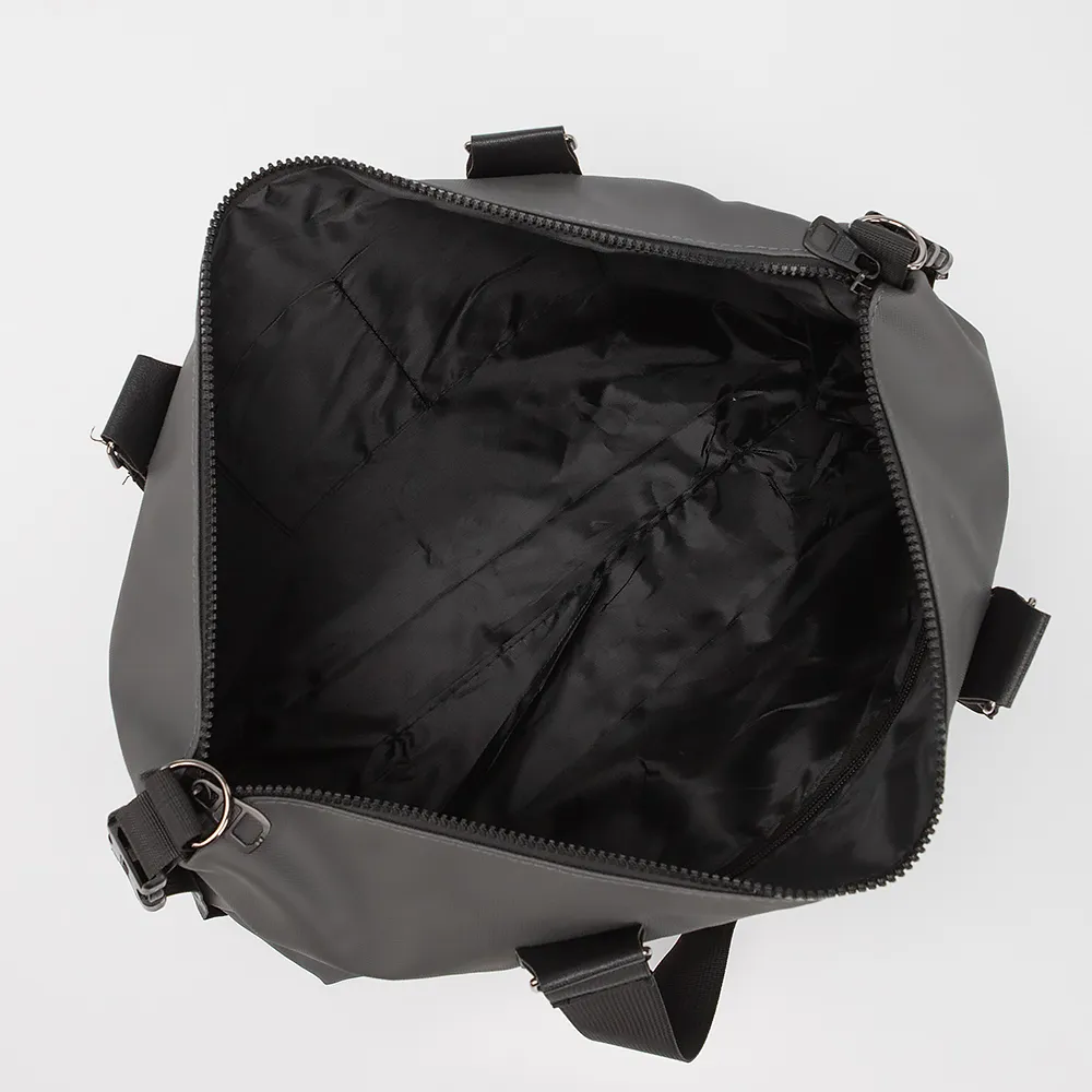 Дорожно-спрортивная сумка от торговой марки Valigetti выполнена из плотного практичного текстильного материала серого цвета. Вместительная модель с двумя длинными ручками и съемным регулируемым плечевым ремнем. Отделение на молнии. Внутри: текстильная подкладка, карман на молнии, накладные карманы. На задней стороне - карман на молнии.