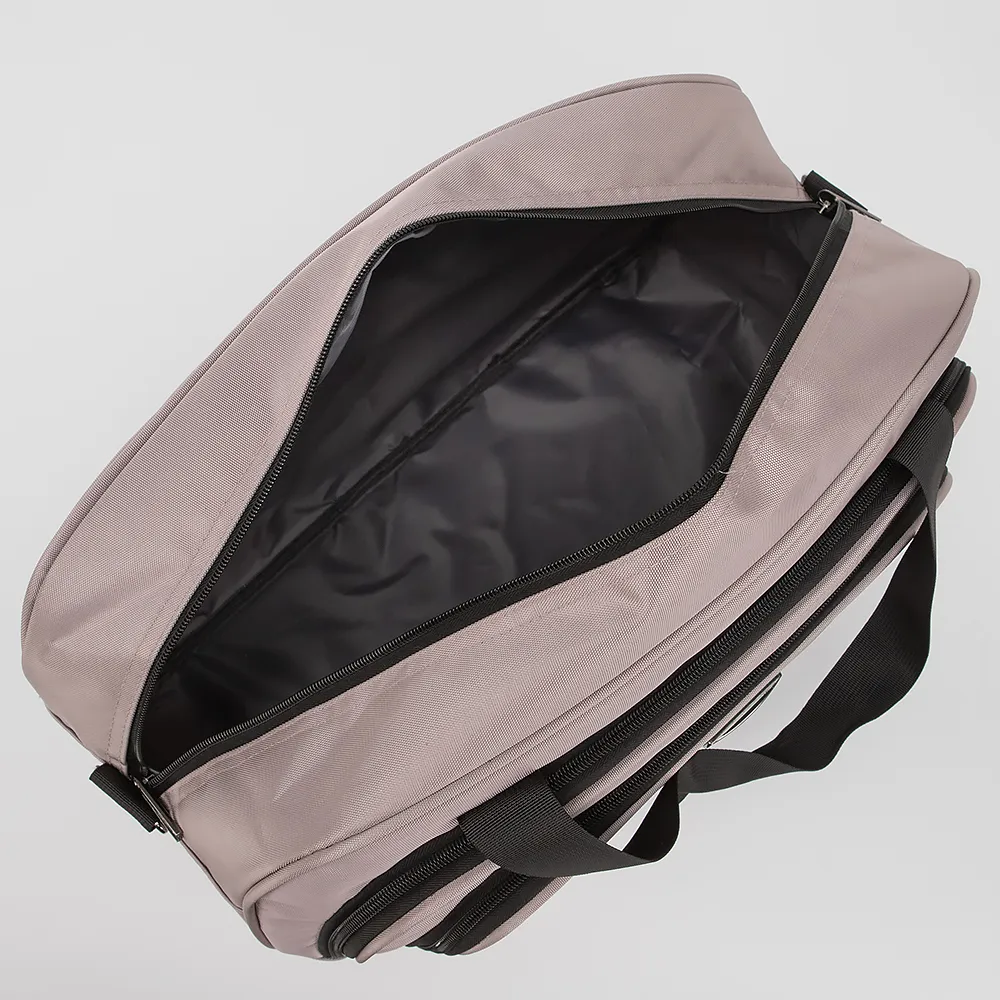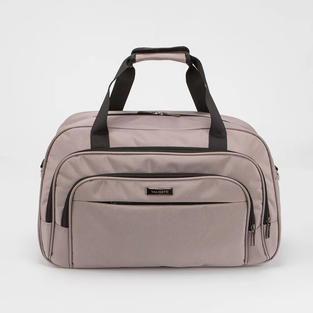 Дорожно-спортивная сумка от торговой марки Valigetti из текстильного материала сиреневого цвета. Модель с двумя ручками с фиксатором на липучке и съемным регулируемым плечевым ремнем. Отделение на молнии. Внутри: текстильная подкладка, карман на молнии, накладной карман. С лицевой стороны - три кармана на молнии. Сзади - петля для крепления на ручку чемодана. Дно оснащено ножками для защиты от износа.
