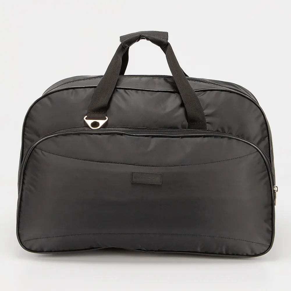 Дорожно-спортивная сумка от торговой марки Ecotope из плотного текстильного материала черного цвета. Вместительная модель с двумя ручками с фиксатором на липучке и съемным плечевым ремнем с наплечником. Отделение на молнии. Внутри: текстильная подкладка, карман на молнии, накладной карман. На лицевой и задней стороне - накладной карман на молнии. Дно оснащено пластиковыми ножками для защиты от износа.