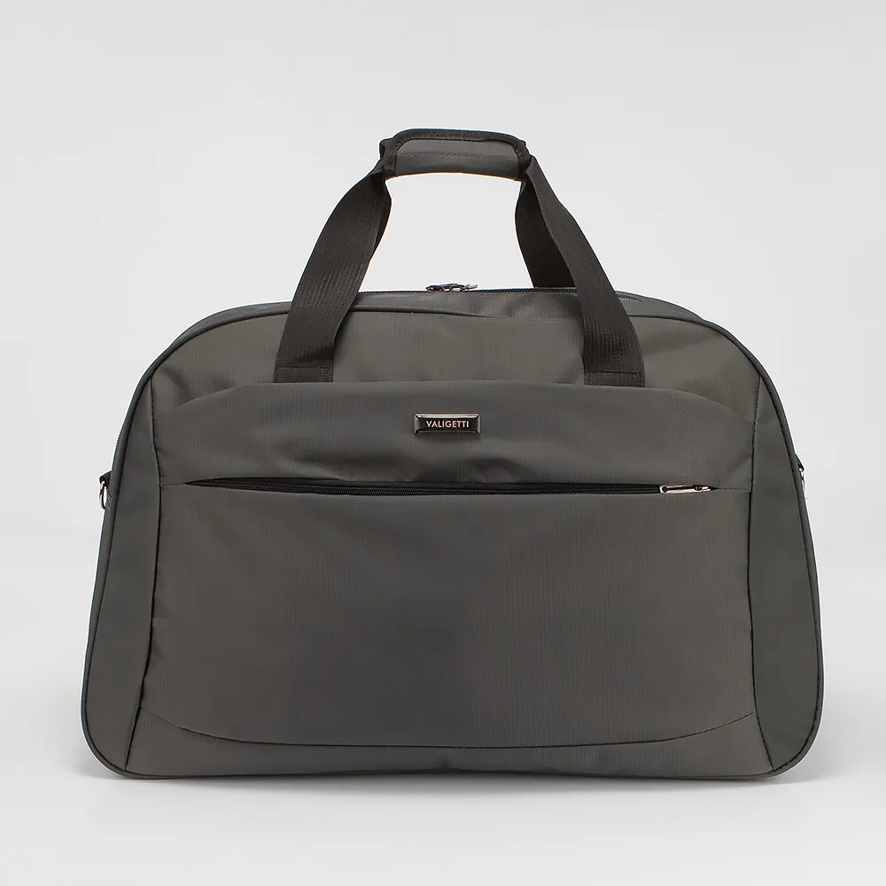 Дорожно-спортивная сумка от торговой марки Valigetti из текстильного материала серого цвета. Модель с двумя ручками с фиксатором на липучке и съемным регулируемым плечевым ремнем. Отделение на молнии. Внутри: текстильная подкладка, карман на молнии. С лицевой стороны - карман на молнии. Сзади - петля для крепления на ручку чемодана. Дно оснащено ножками для защиты от износа.