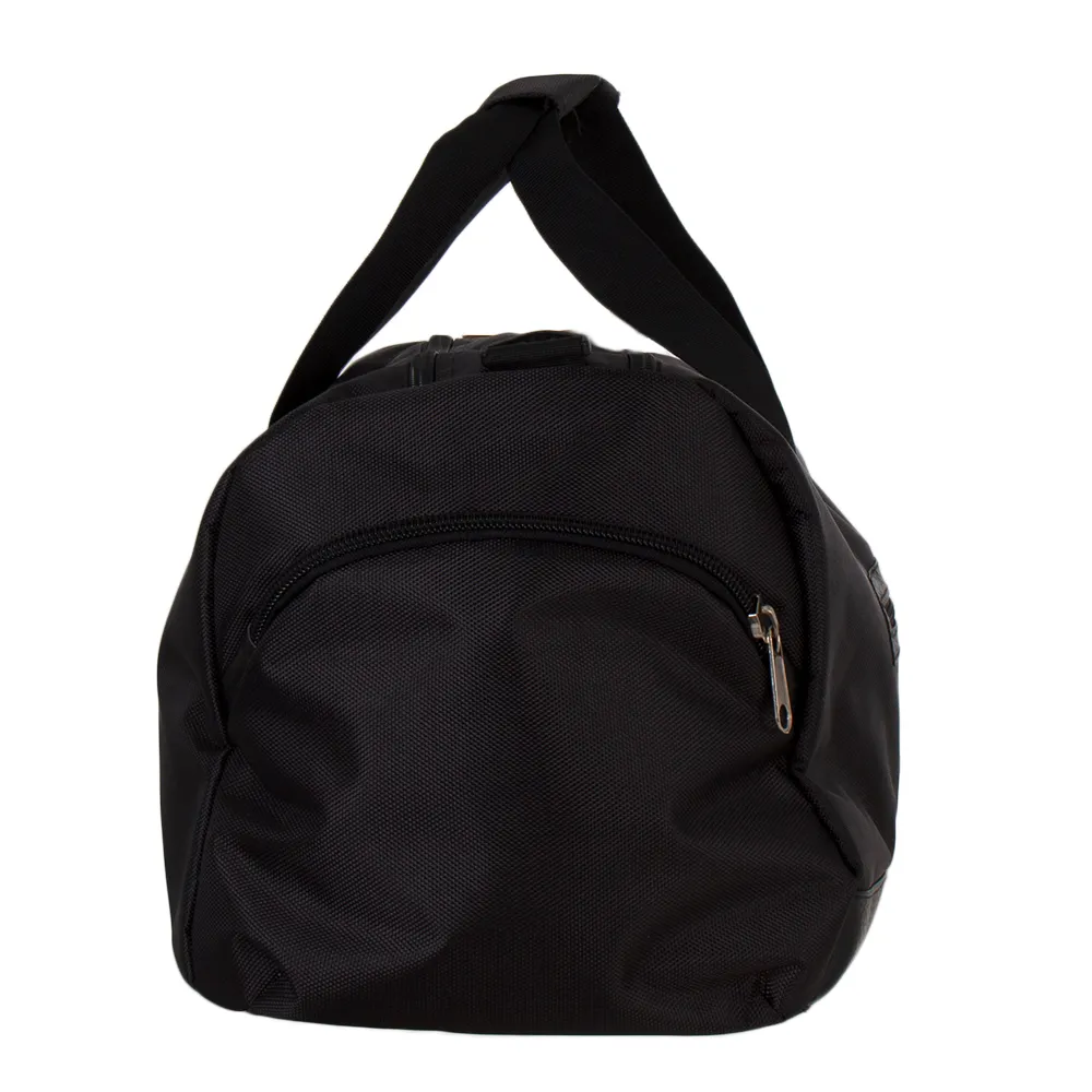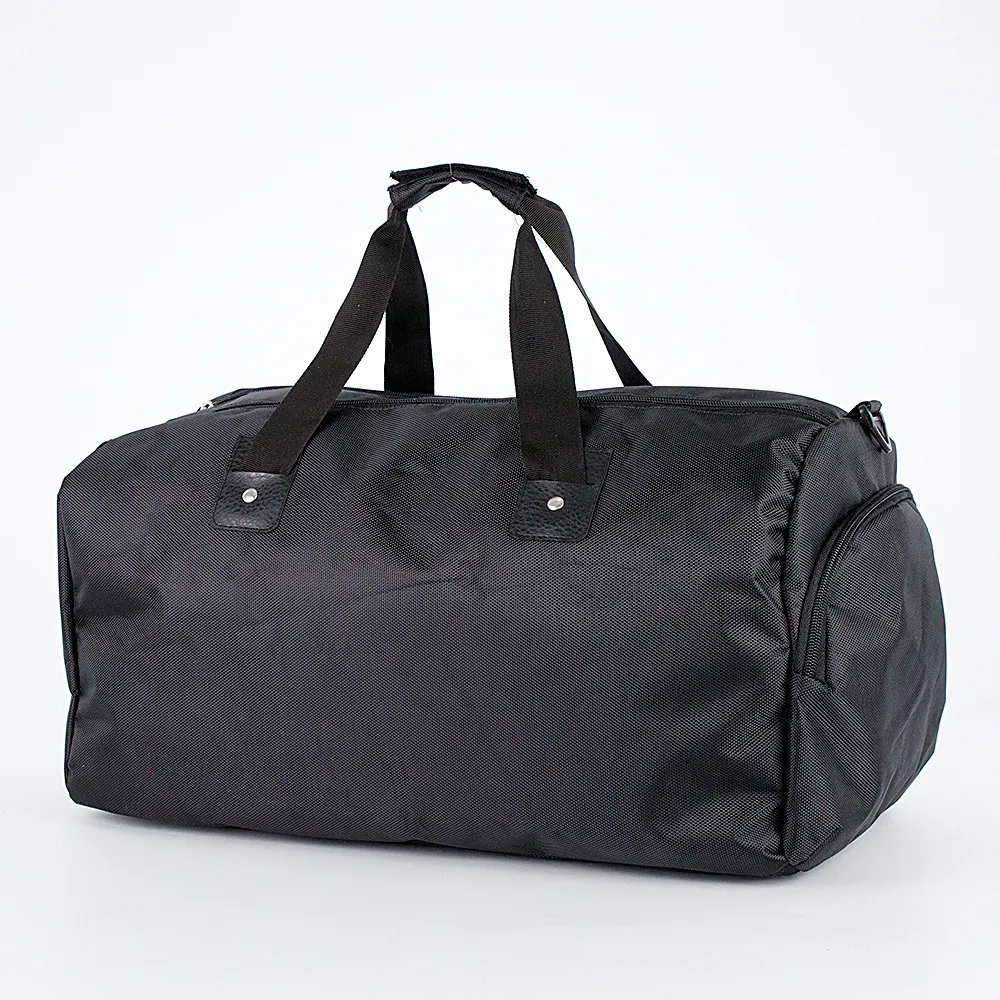 Дорожно-спортивная сумка от торговой марки Ecotope выполнена из практичного полиэстера и искусственной кожи черного цвета. Модель с двумя ручками с фиксатором на липучке, съемным плечевым ремнем. Отделение на двух молниях и липучке. Внутри: без подкладки. На лицевой стороне и сбоку – карман на молнии. Дно сумки оснащено прорезиненными ножками для защиты от износа.