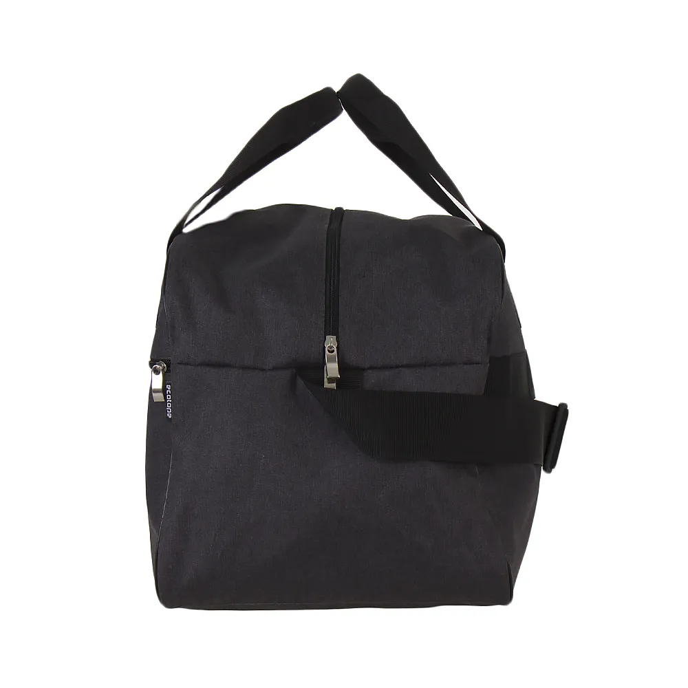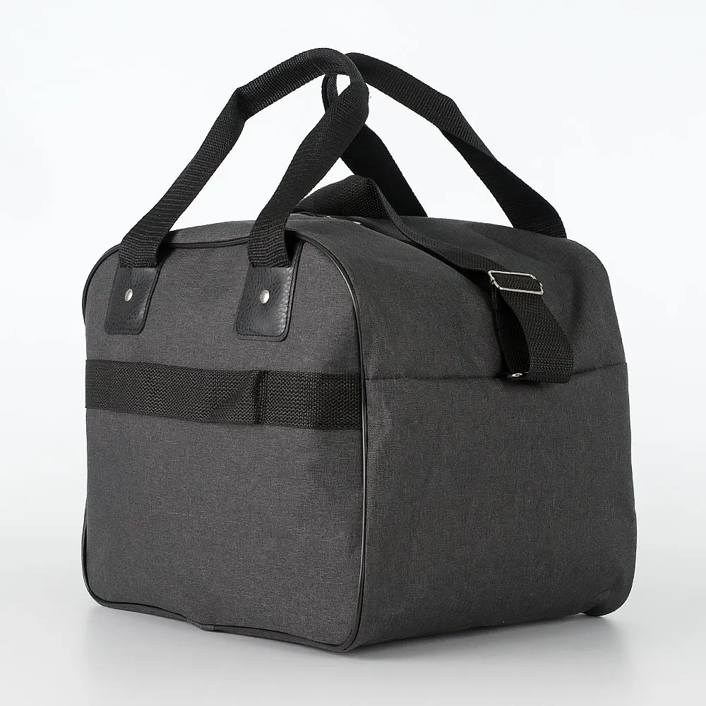 Вместительная дорожно-спортивная сумка от торговой марки Ecotope выполнена из прочного полиэстера серого цвета. Модель авиа в форме коробки с двумя ручками и несъемным регулируемым плечевым ремнем. Отделение на молнии с частичной подкладкой. На лицевой стороне – карман на молнии. На задней – лямка для крепления на выдвижную ручку чемодана. Размеры сумки подходят под калибратор авиакомпании «Победа».