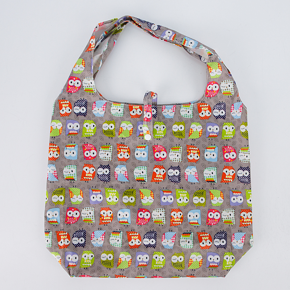 Практичная складная сумка выполнена из плотного текстильного материала с оригинальным принтом, с изображением сов. Модель с одним основным отделением с застежкой на ремешок на кнопке. Мягкая бескаркасная конструкция позволяет компактно упаковать сумку в маленький чехол на кнопке.