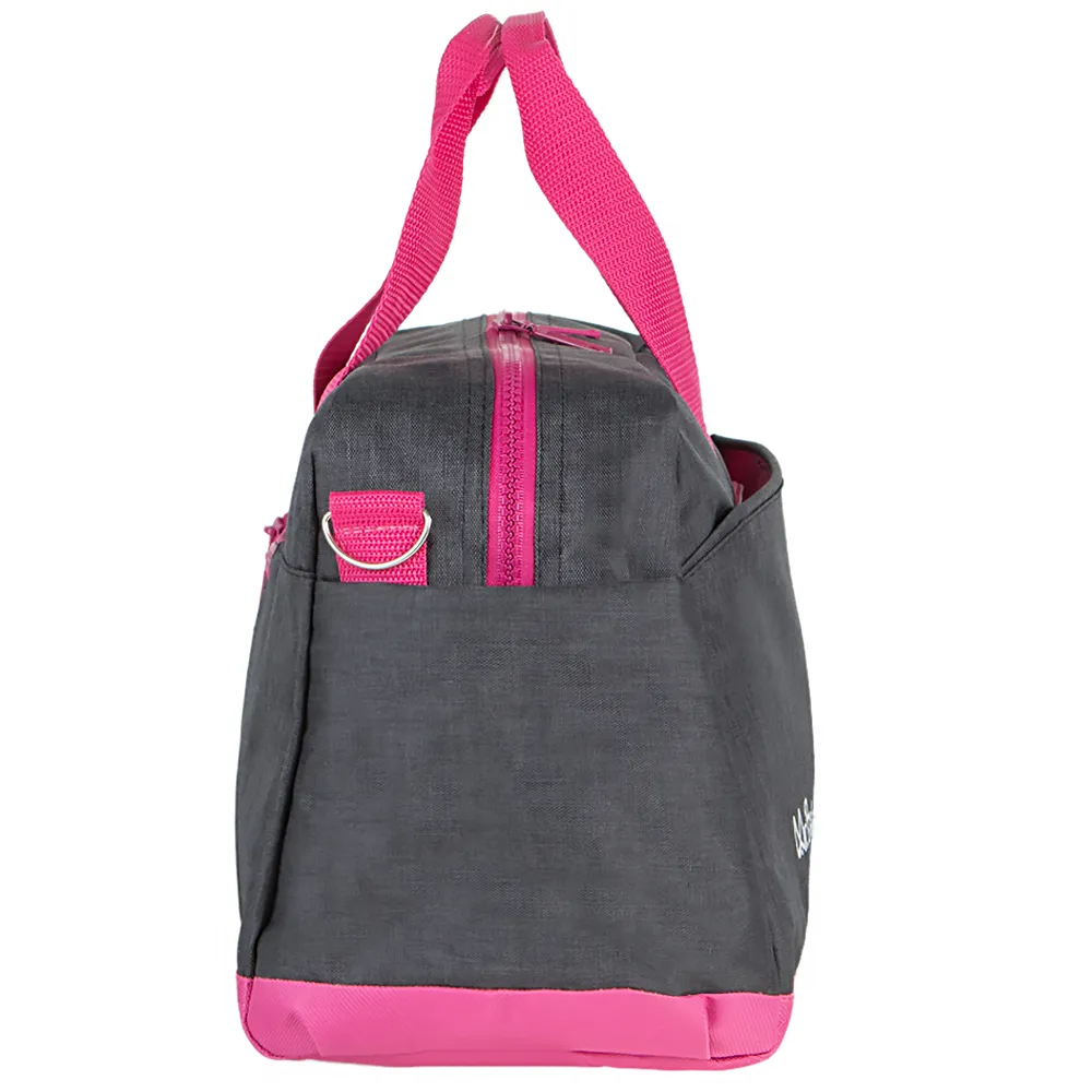Компактная стильная спортивная сумка от бренда Mr.Bag выполнена из текстильного материала в сочетании бордового и черного цвета. Модель в форме купола, с двумя удлиненными ручками и съемным плечевым ремнем. Отделение на молнии, с текстильной подкладкой. Внутри: карман на молнии, накладной карман на молнии. На передней и задней сторонах – карман на молнии. Сбоку справа карман со скрытым кармашком на молнии. Спереди – декоративный принт с названием бренда и белыми вертикальными полосками.