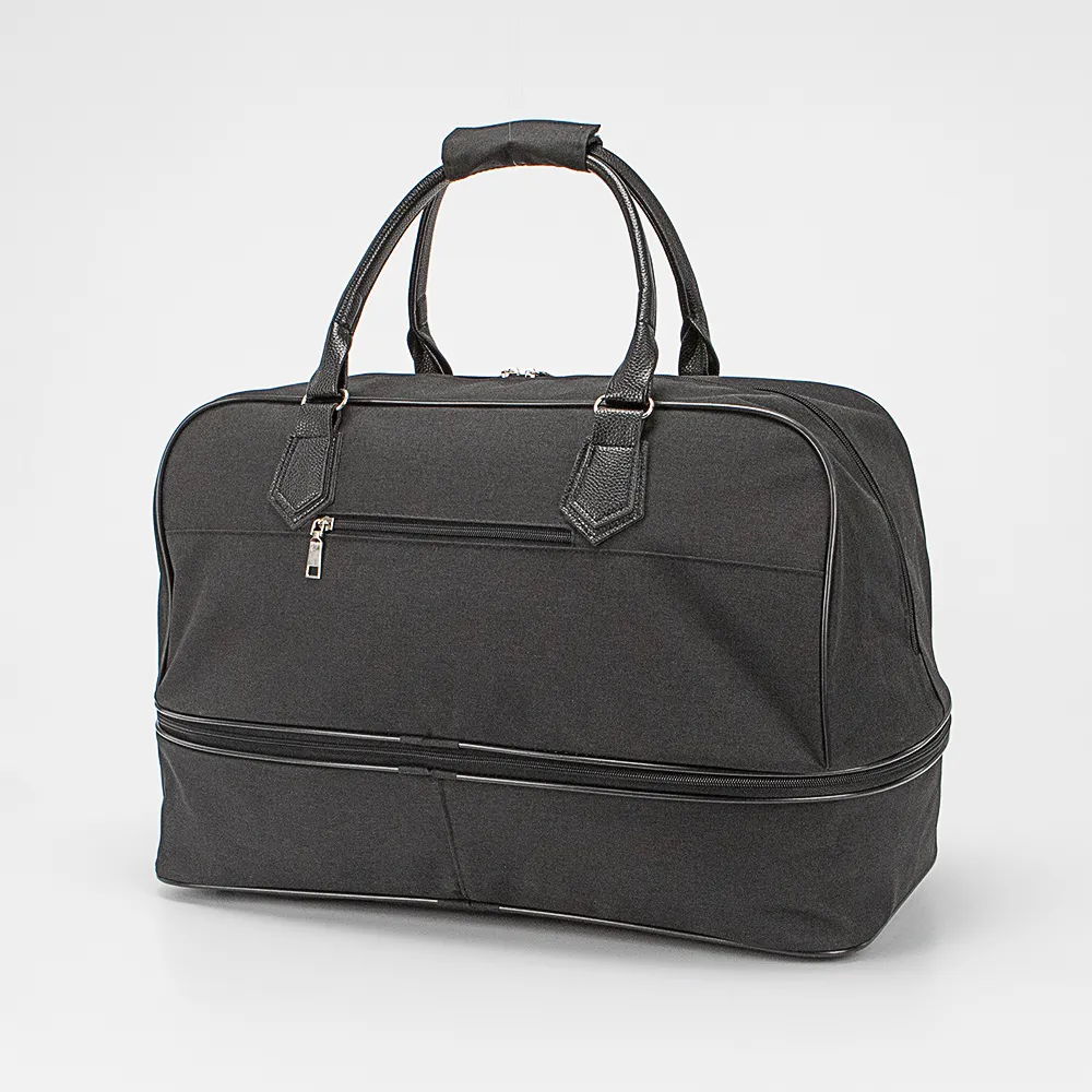 Дорожно-спортивная сумка от торговой марки Ecotope из практичного текстильного материала черного цвета. Модель с двумя плотными ручками из искусственной кожи с фиксатором на липучке, съемным регулируемым плечевым ремнем. Отделение на молнии с двумя встречными бегунками. Внутри: карман на молнии. На задней стороне – карман на молнии. Дно оснащено пластиковыми ножками для защиты от износа. Имеется раздвижка для увеличения объема.