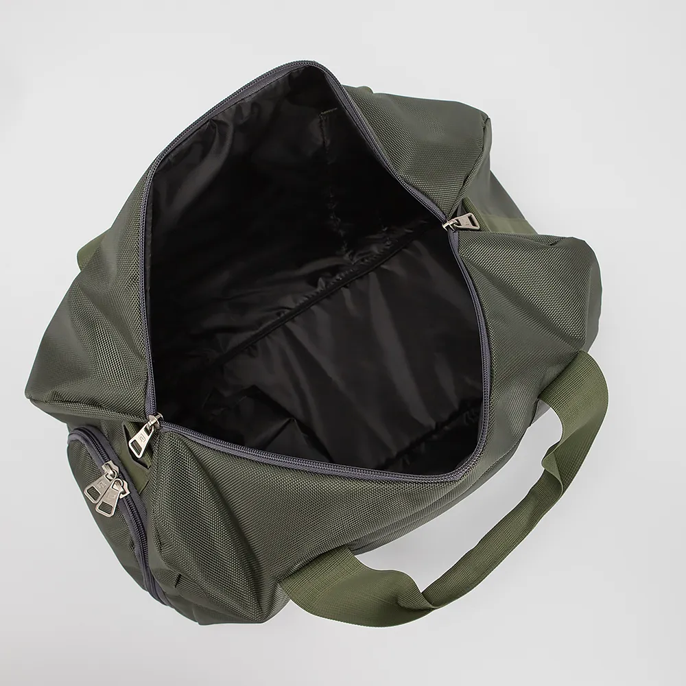 Дорожно-спортивная сумка от торговой марки Ecotope выполнена из плотного текстильного материала зеленого цвета. Модель с двумя ручками с фиксатором на липучке и съемным регулируемым плечевым ремнем. Отделение на молнии. Внутри: текстильная подкладка. Сбоку - карман для обуви. На лицевой стороне - карман на молнии.