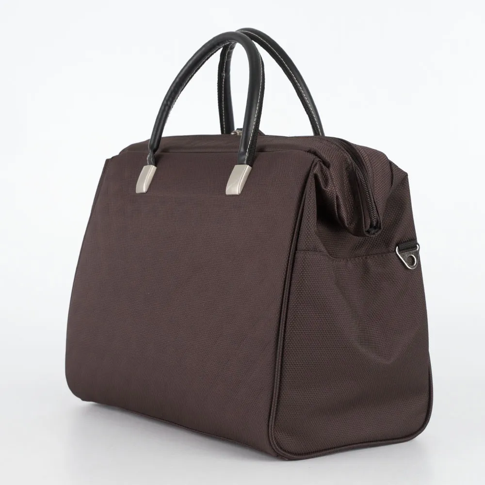 Дорожная сумка-саквояж от торговой марки Rion из текстильного материала на вспененной основе Eva с ромбовидным рисунком и искусственной кожи. Модель синего цвета с двумя плотными ручками и съемным регулируемым плечевым ремнем с наплечником. Отделение на молнии с каркасным типом открытия, благодаря чему широко раскрывается, обеспечивая удобный доступ. Внутри: текстильная подкладка, вместительный карман на молнии. На лицевой стороне – карман на молнии. Дно оснащено ножками для защиты от износа. Модель весом 940 грамм рассчитана на объем 28 литров.