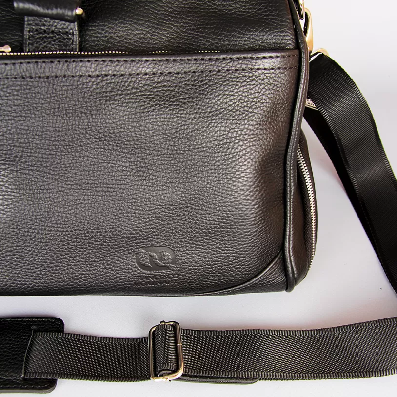 - Текстильный плечевой ремень регулируется по длине и имеет кожаную вставку;