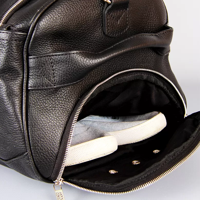 - По бокам сумки расположены два кармана для обуви с вентиляционными отверстиями;