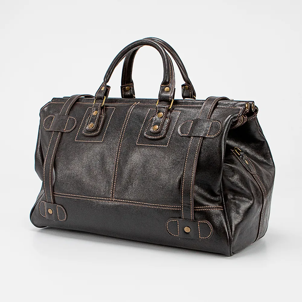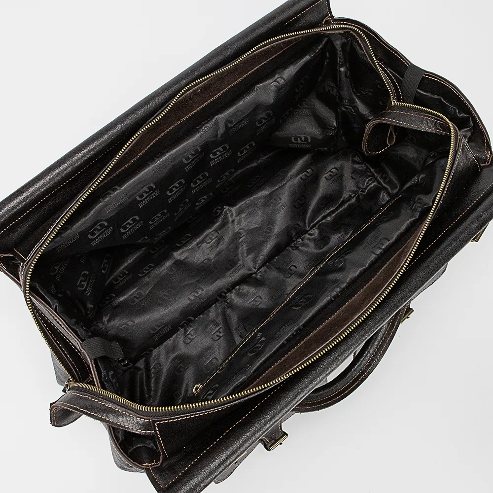 Дорожно-спортивная сумка-саквояж от торговой марки Francesco Molinary из натуральной кожи коричневого цвета с контрастной отстрочкой. Модель с двумя плотными ручками и съемным регулируемым плечевым ремнем, выполненным из текстильного материала. Отделение на молнии имеет рамочный тип закрытия, что обеспечивает удобный доступ; дополнительно закрывается двумя ремешками с пряжками. Внутри: фирменная подкладка, вместительный карман на молнии. На лицевой стороне – два накладных кармана. Ручки и ремешки дополнительно укреплены хольнитенами. Дно оснащено металлическими ножками для защиты от износа.