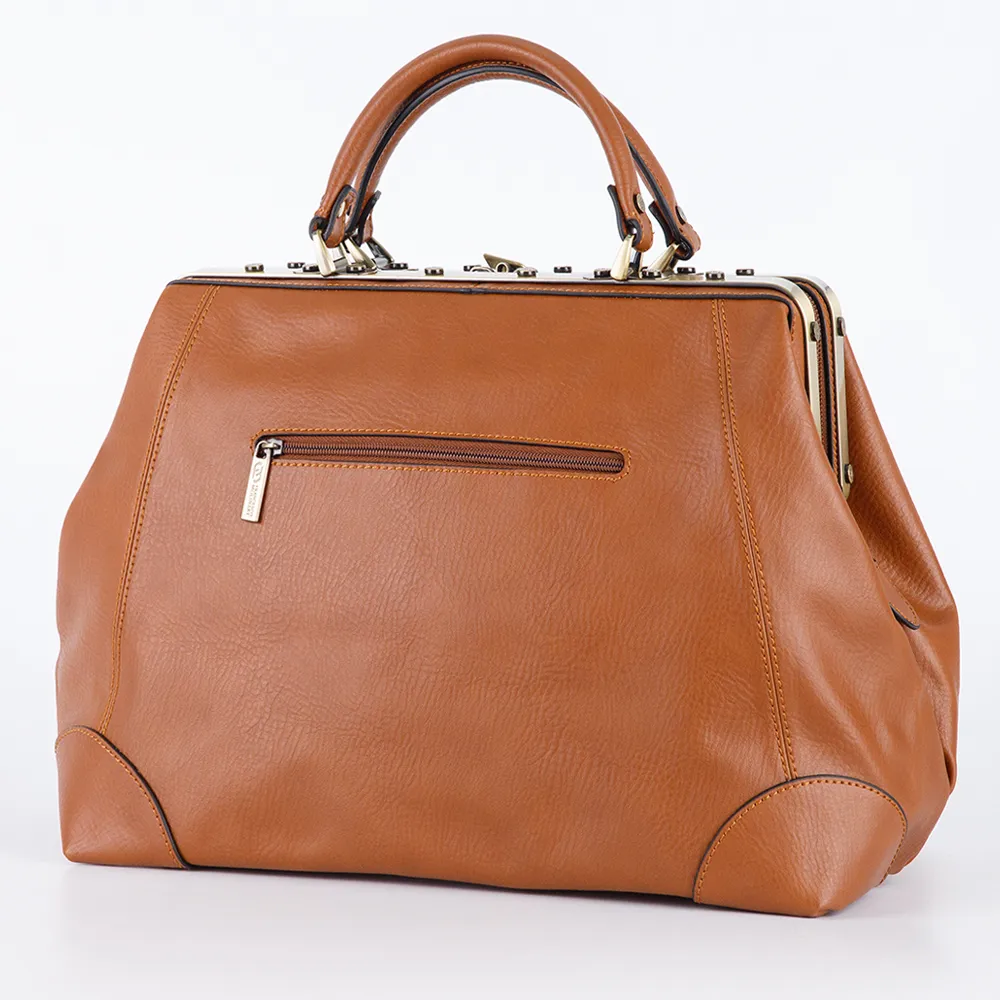 Саквояж от торговой марки Francesco Molinary выполнена из натуральной кожи коричневого цвета. Модель с двумя плотными ручками. Имеет рамочный тип открытия, что обеспечивает удобный доступ. Отделение на молнии с двумя встречными бегунками. Внутри: фирменная подкладка, карман на молнии. На задней стороне – карман на молнии. Дно оснащено ножками для защиты от износа.