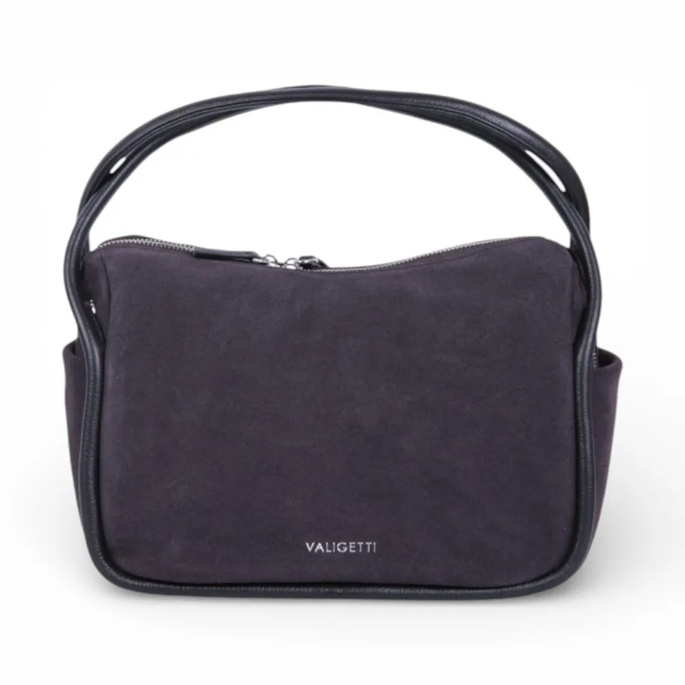 Сумка от бренда Valigetti выполнена из натуральной замши в темно-сером цвете. Вместительная модель с двумя ручками и съемным регулируемым плечевым ремнем. Отделение на молнии. Внутри: фирменная подкладка, карман на молнии, накладной карман. Дно оснащено металлическими ножками для защиты от износа.