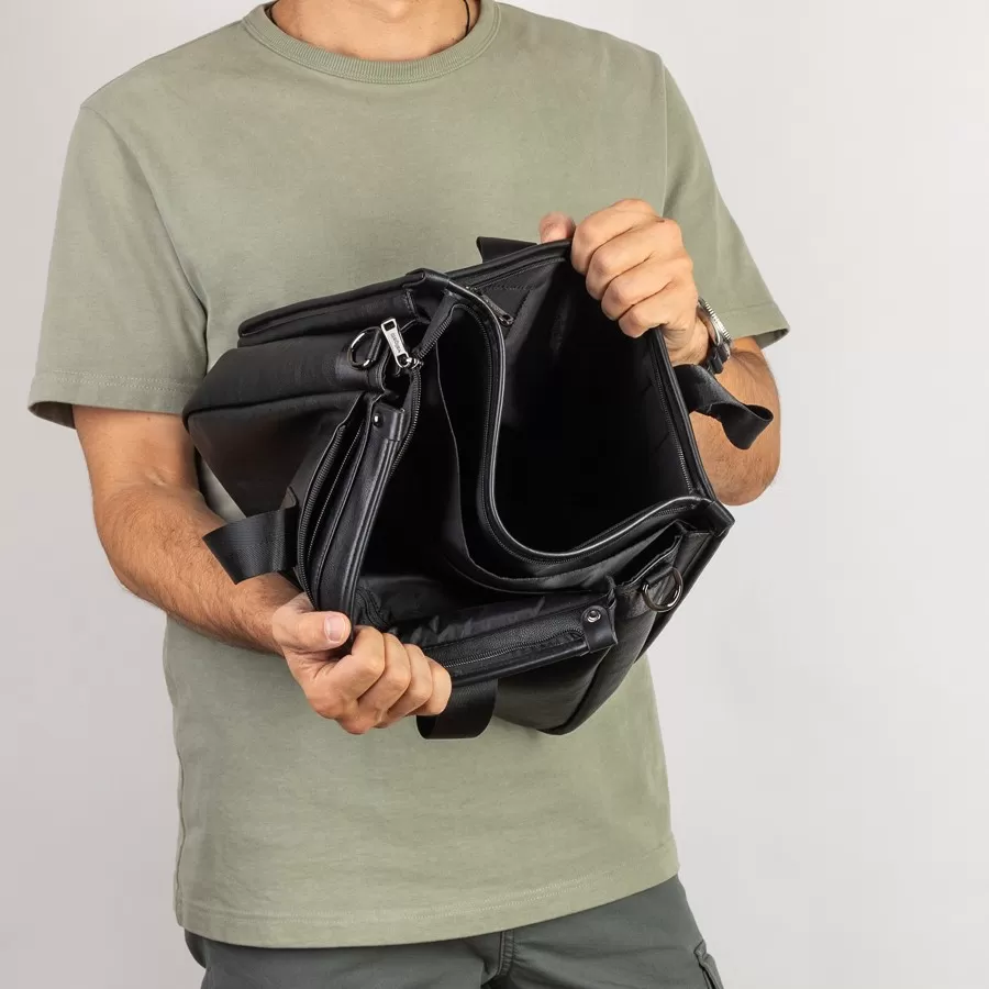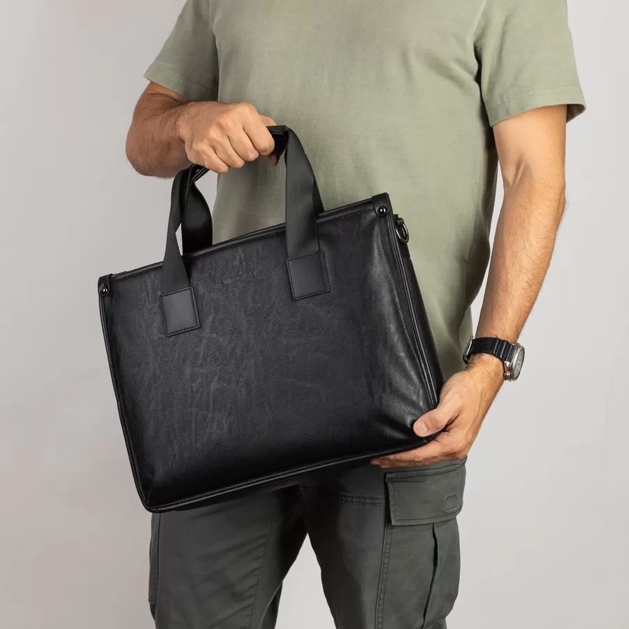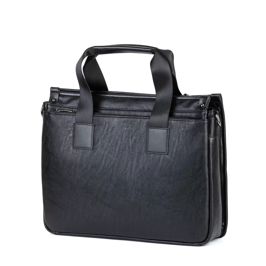 Мужская деловая сумка бренда Valigetti из искусственной кожи с зерненной структурой. Прошита фирменной подкладочной тканью. Имеет вшитые ручки из кожи и текстиля. Внутри 3 отделения на молнии, карман на молнии и кармашек для мелких вещей. В комплект входит прицепной плечевой ремень