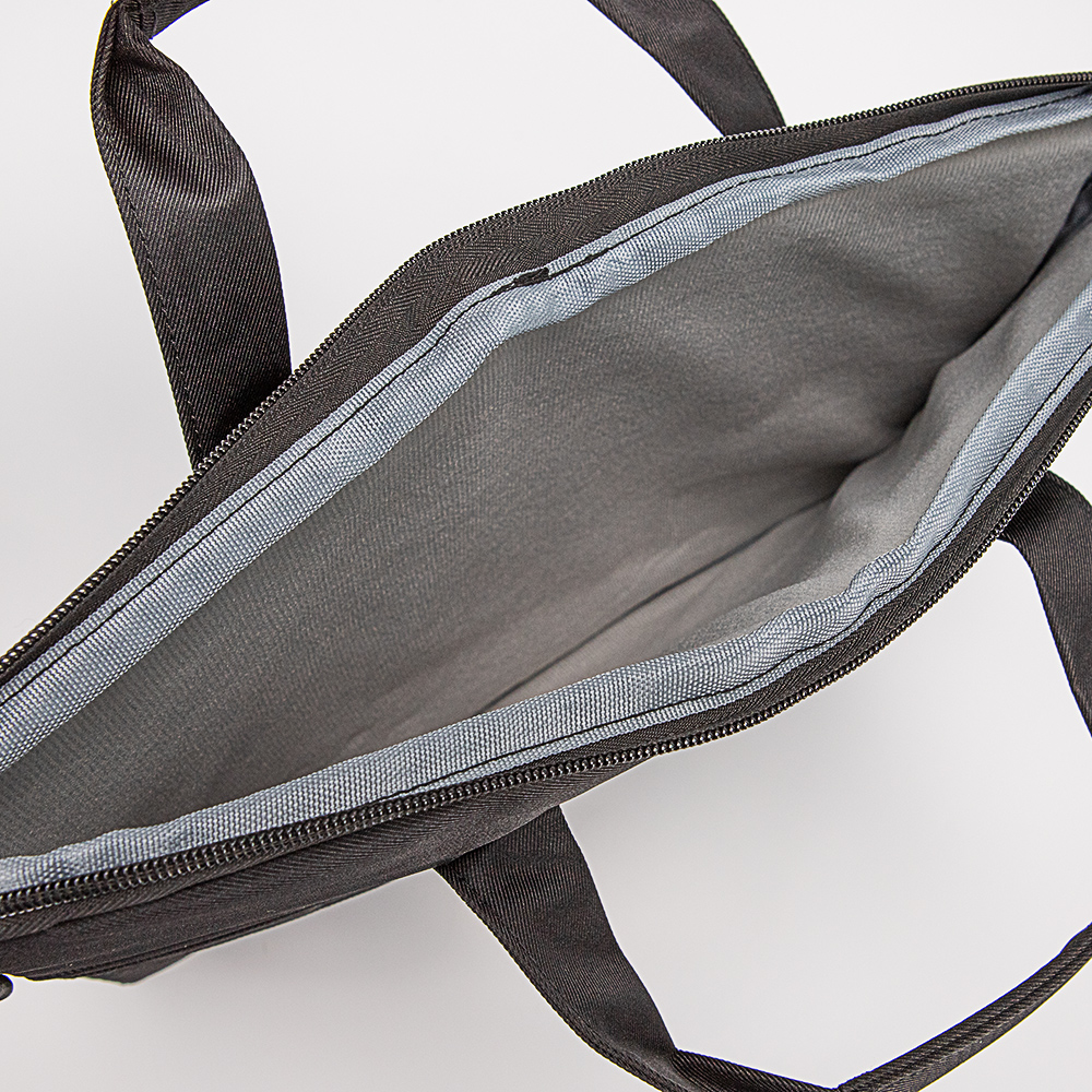 Сумка от торговой марки Ecotope из практичного текстильного материала. Плоская модель для ноутбука диагональю 14 дюймов, с двумя ручками, съемным регулируемым плечевым ремнем. Стенки сумки уплотнены. Отделение на молнии, с текстильной подкладкой. На лицевой стороне – карман на скрытой молнии. На задней стороне имеется лямка для крепления на выдвижную ручку чемодана.