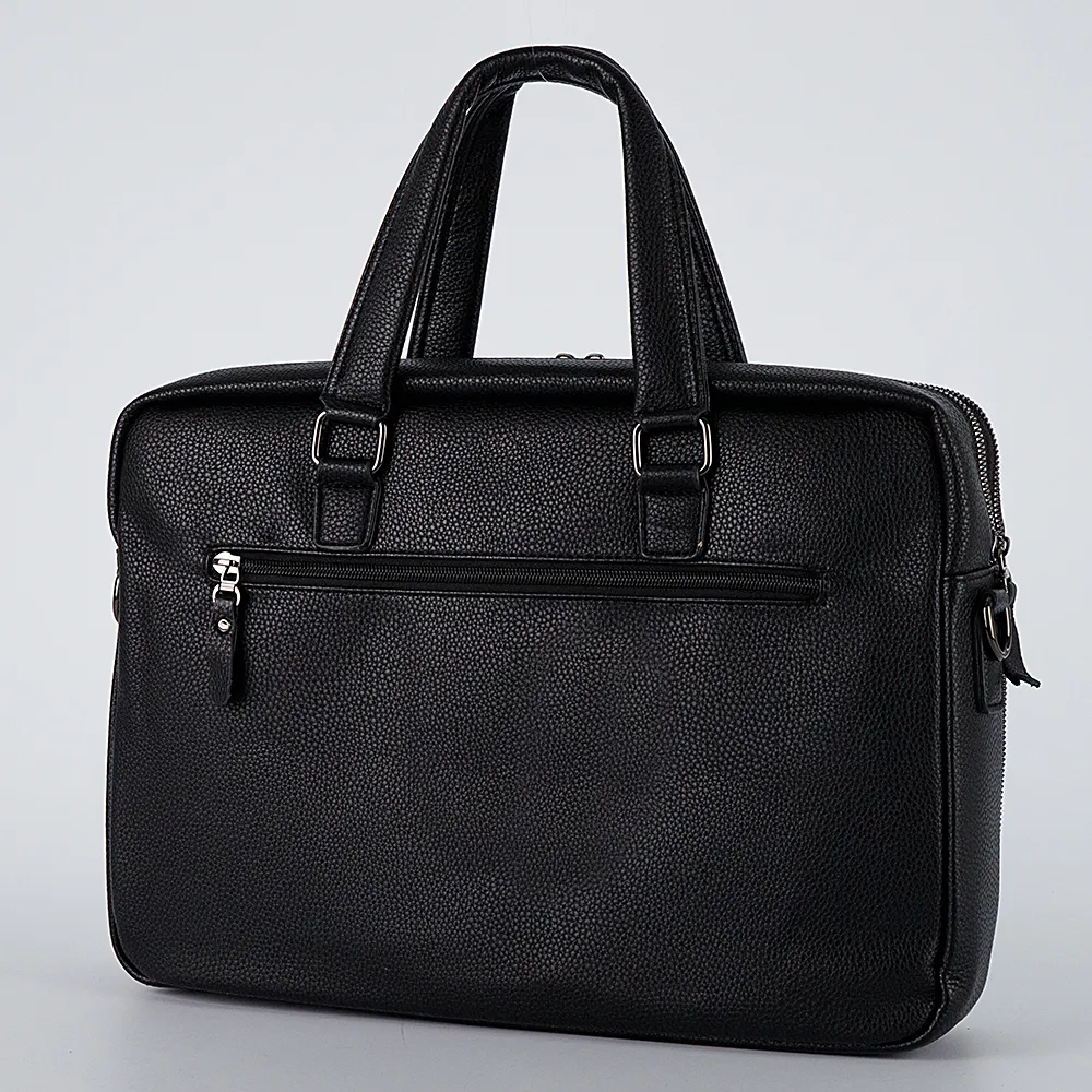 Сумка деловая с отсеком для ноутбука представлена брендом Poshete, выполнена в чёрном цвете из искусственной кожи с текстильной подкладкой. Сумка с двумя отделениями на молниях, снаружи два кармана на молниях и две ручки для переноски, в комплекте предусмотрен плечевой ремень.