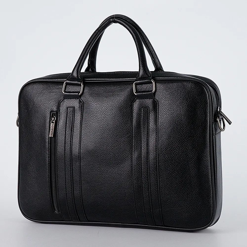 Сумка предназначена для ноутбука, имеет крепкие ручки, молния основного отделения заходит на бока, сзади карман на вертикальной молнии. Модель имеет толщину и держит форму. Представлена брендом Poshete и выполнена из искусственной фактурной кожи. Также туда поместится папка с документами.