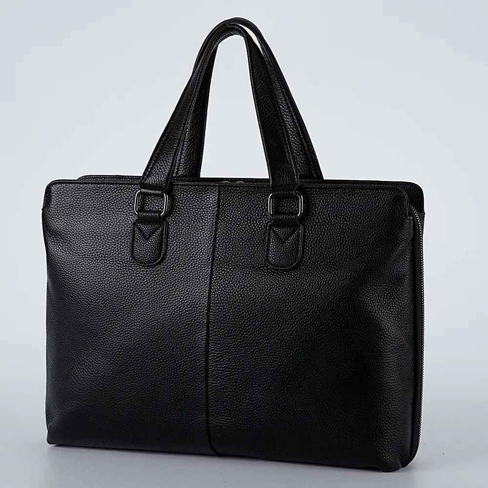 Деловая сумка от бренда Francesco Molinary выполнена из натуральной кожи с качеством и элегантностью. Модель чёрного цвета, прямоугольной формы. Снаружи карман на скрытой молнии и две короткие ручки, в комплекте есть плечевой ремень. Сумка с тремя независимыми отделениями на молниях, внутри текстильная подкладка и кармашки. Средняя часть широко распахивается, благодаря молнии по трём сторонам. Практичная, хорошо подойдёт для ноутбука и документов.