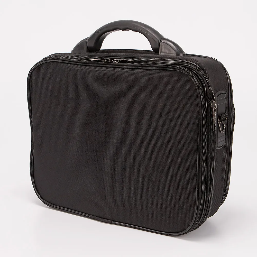Кейс от торговой марки Mr.Bag из текстильного материала черного цвета. Модель с пластиковой ручкой и съемным регулируемым плечевым ремнем. Два отделения на молнии. Заднее узкое отделение для документов с накладным карманом внутри. Основное отделение глубокое и вместительное. На лицевой стороне - накладной карман на молнии и один прорезной карман на молнии. Имеется раздвижка на молнии для увеличения объема.
