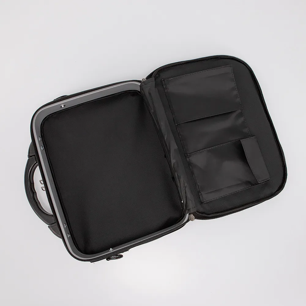 Кейс от торговой марки Mr.Bag из текстильного материала черного цвета. Модель с пластиковой ручкой и съемным регулируемым плечевым ремнем. Два отделения на молнии. Заднее узкое отделение для документов с накладным карманом внутри. Основное отделение глубокое и вместительное. На лицевой стороне - накладной карман на молнии и два прорезных кармана на молнии.