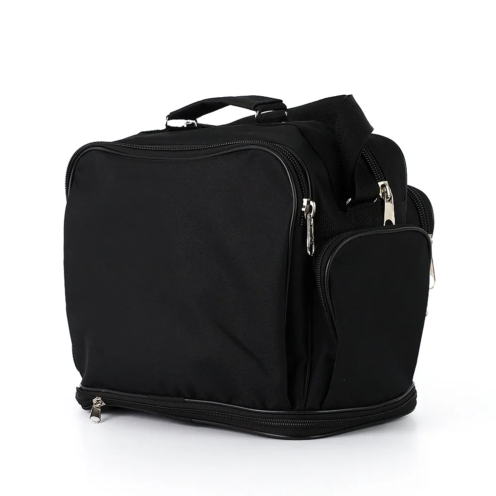 Вместительная сумка от торговой марки Rise из полиэстера черного цвета. Модель с ручкой и несъемным регулируемым плечевым ремнем с наплечником. Два отделения на молнии. На лицевой стороне – накладной и прорезной карманы на молнии. По бокам – карманы на молнии. Дно оснащено пластиковыми ножками для защиты от износа. Имеется раздвижка на молнии для увеличения объема.