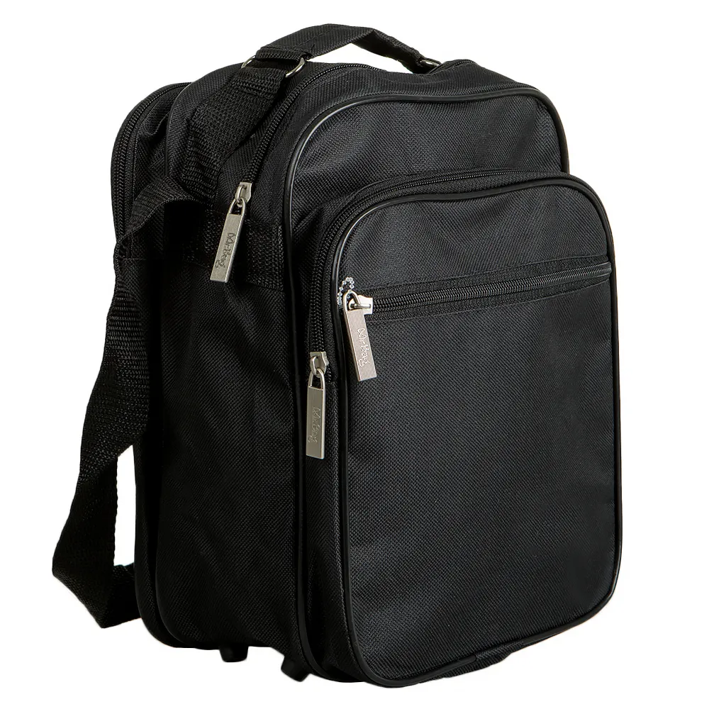 Мужская деловая сумка Mr.Bag выполнена из плотного и практичного полиэстера чёрного цвета. Сумка жёсткой прямоугольной формы. Снаружи расположились два кармана на молниях, которые всегда так нужны, эргономичная ручка и регулируемый плечевой ремень. Модель с двумя независимыми отделениями на молниях.