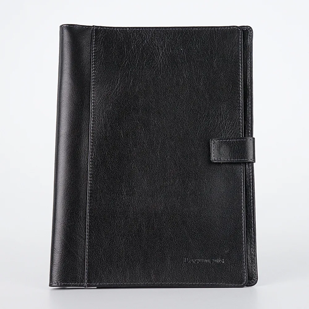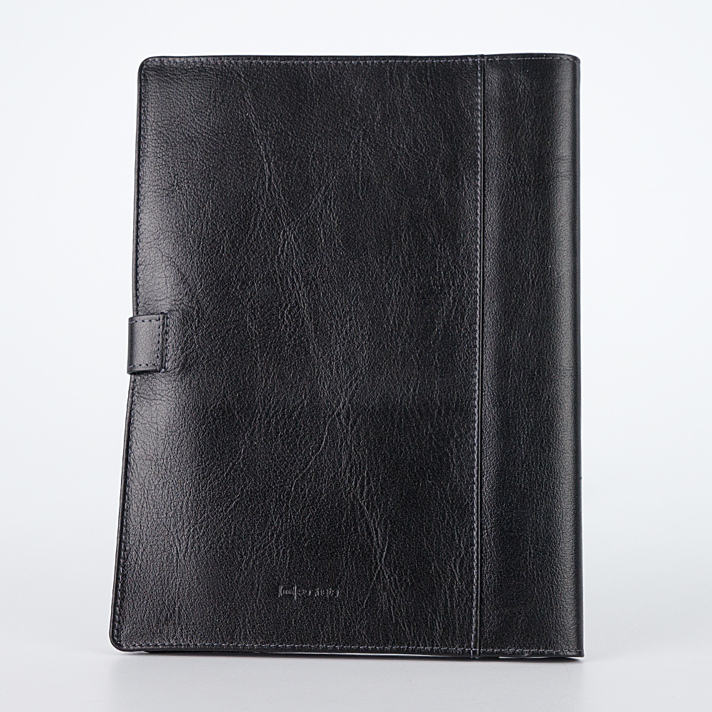 Классическая папка для документов от бренда Poshete. Аксессуар чёрного цвета из натуральной мягкой кожи. Модель закрывается ремешком на кнопке. Внутри мягкие пластиковые разно размерные вкладыши для документов. По два вкладыша для каждого из документов: медицинский полис нового образца, медицинский полис старого образца, свидетельство о рождении, СНИЛС, ИНН.