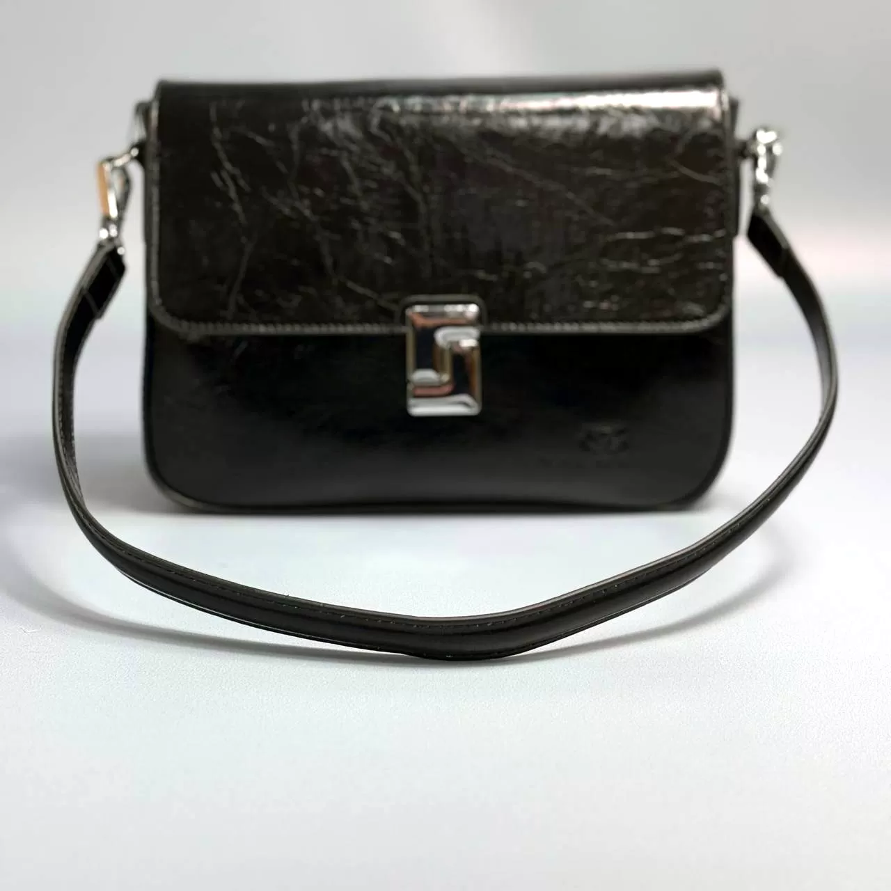Сумочка из натуральной кожи от бренда Valigetti обладает съемным регулируемым плечевым ремнём длиной 115 см и съёмной ручкой длиной 65 см.