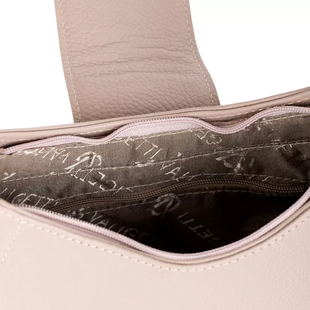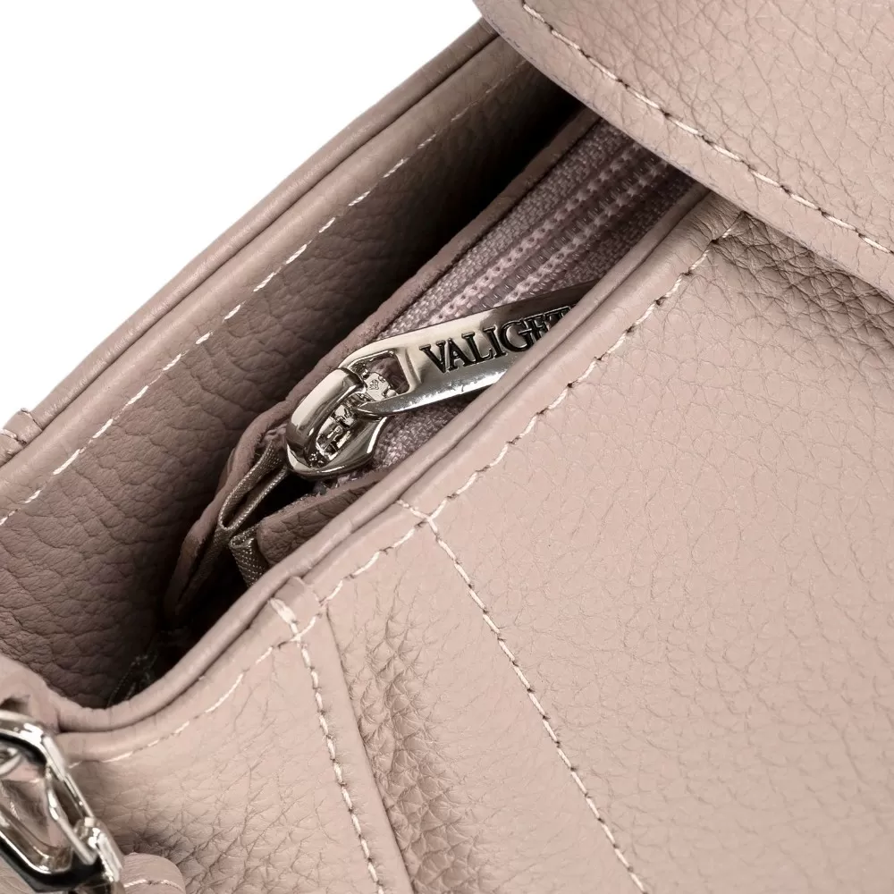 Сумка от бренда Valigetti изготовлена из натуральной кожи. Она оснащена основным отделением с молнией и магнитной застежкой. Сзади есть дополнительный карман на молнии. В комплекте идут два плечевых ремня.